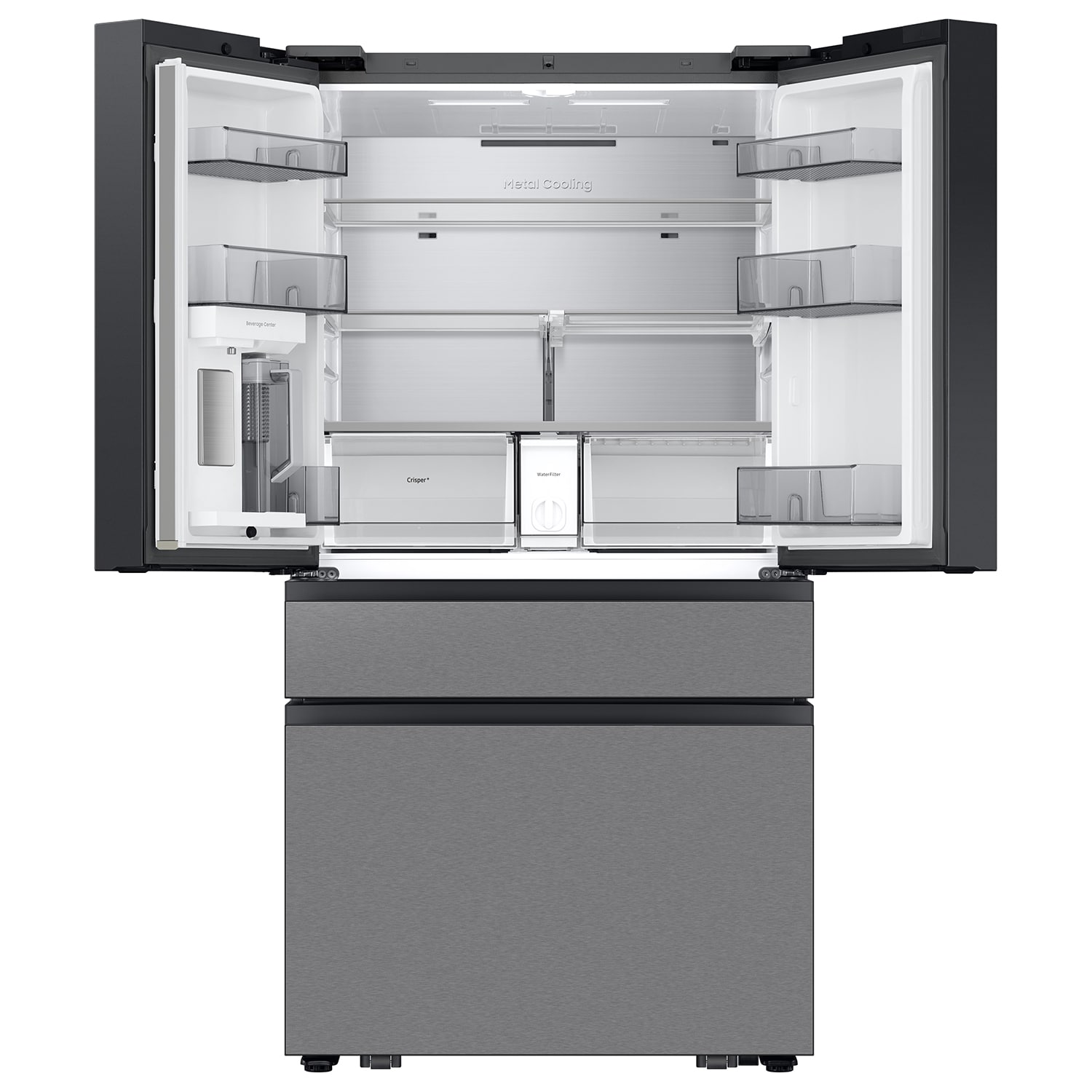 We carry French door refrigerators with a variety of options, including internal and external water dispensers and smart technology.