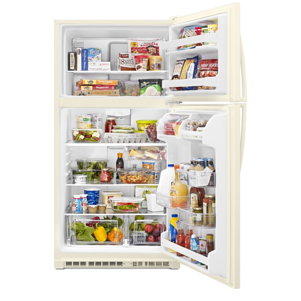 Top-freezer refrigerators also come in a variety of colors. One is sure to complement your décor. Options range from bisque or black to metallic or standard white, among others.