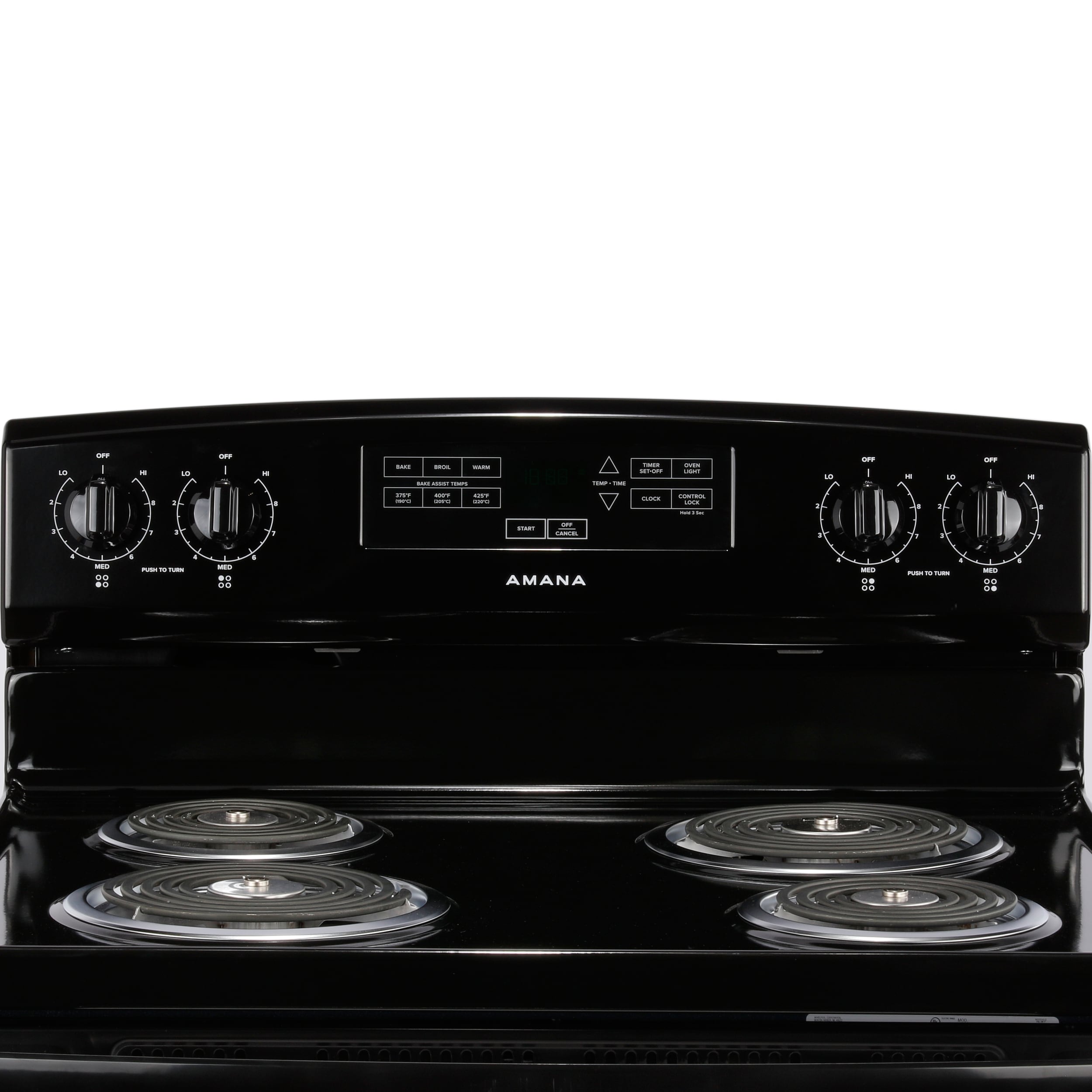 Update your kitchen appliances with the Amana 18.2-cu ft Top-Freezer Refrigerator & Electric Range Suit in Black Collection. This collection includes the 18.2-cu ft Top-Freezer Refrigerator, 30-in 4 Elements 4.8-cu ft Freestanding Electric Range, 1.7-cu ft 1000-Watt Over-the-Range Microwave, and Front Control 24-in Built-In Dishwasher with ENERGY STAR, 59-dBA that are designed with special features and settings to make each step in getting meals on the table more efficient.