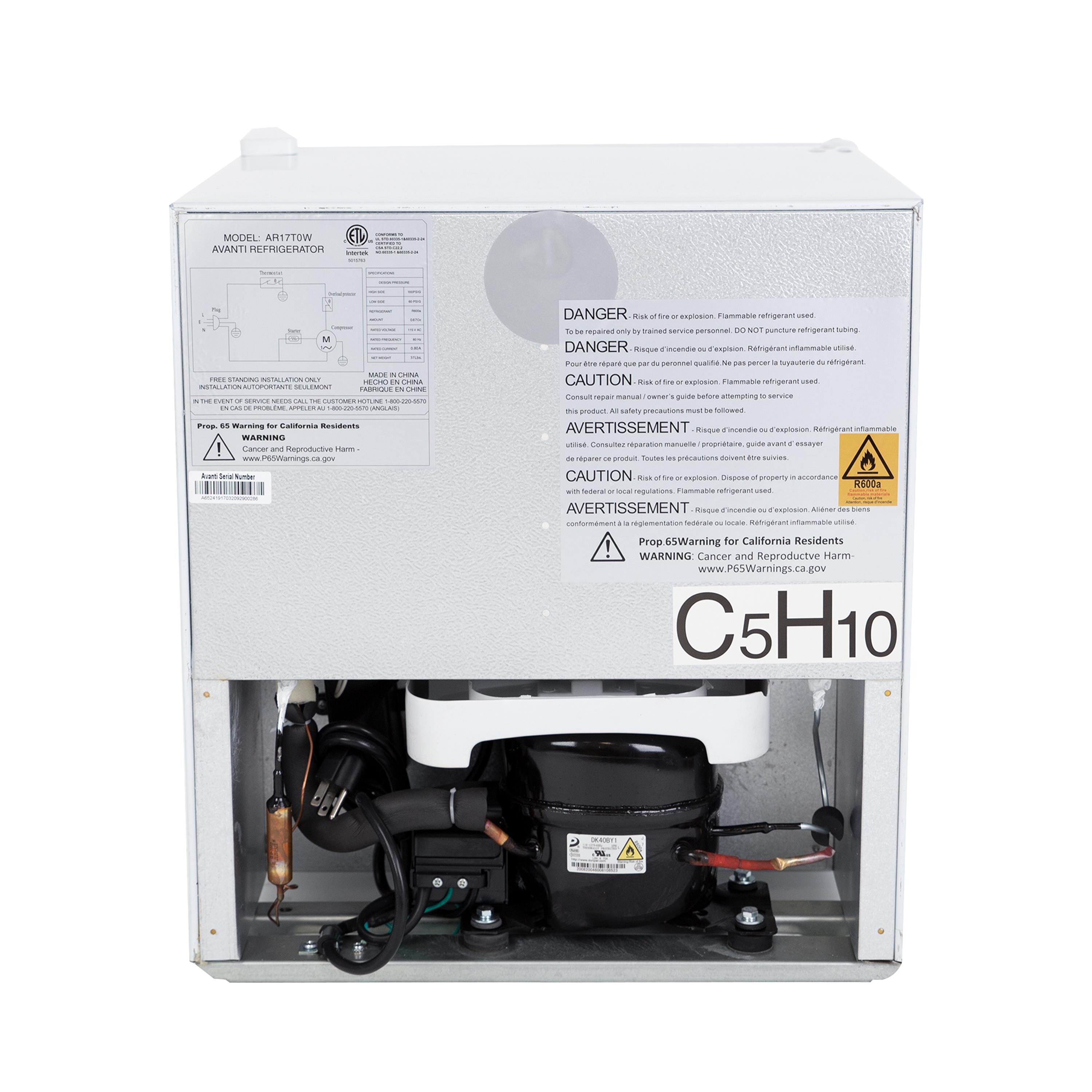 Keep your snacks and favorite beverages close by in the compact, 1.7 cubic foot refrigerator from Avanti. The perfect mini fridge for the office, dorm, man cave, she-shed, bar, bedroom, or anywhere you need a little extra refrigerator space. The built in door shelves, including a 2 liter storage compartment, offer space for drinks and condiments. Use the adjustable, removable shelving to arrange salads, fruits, snacks, and other foods for easy access throughout the day. This compact fridge features a compressor cooling system and automatic defrost, so your foods remain fresh and cold. Select the right settings for your items with the full range temperature control.