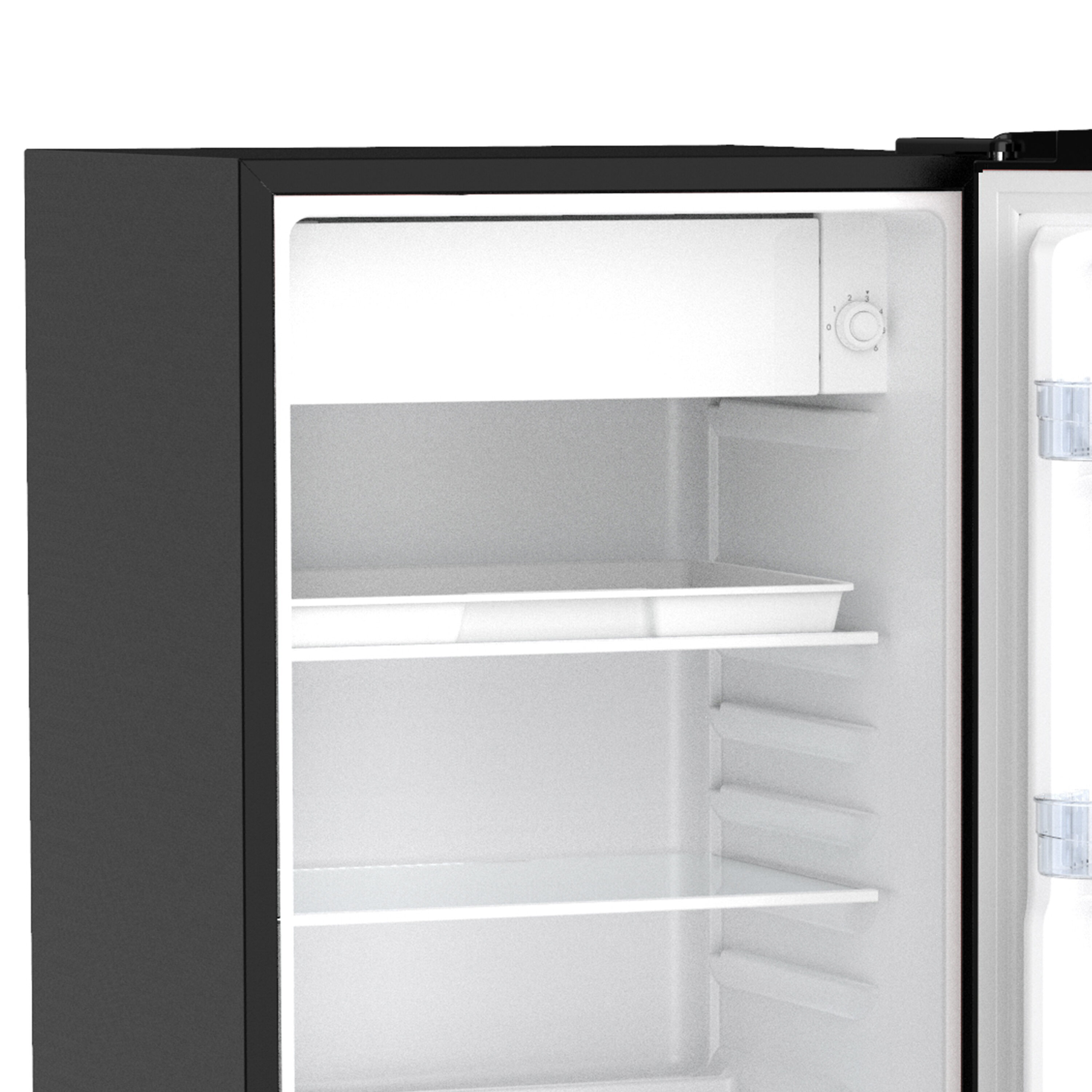 This retro-inspired compact refrigerator combines style, functionality, and efficiency to bring a colorful and sophisticated touch to any environment. With a spacious 3.1 cubic feet capacity, this fridge is the perfect solution for saving space while keeping your favorite foods and beverages fresh and conveniently within reach. Whether you need it for your home, dorm, office, or recreational area, this unit fits seamlessly into any setting, adding a pop of style and practicality. The refrigerator features manual defrost with a drip tray, ensuring your items stay fresh and cold while maintaining optimal performance. Its ENERGY STAR certification helps conserve energy and reduces your electricity costs, making it a smart and eco-friendly choice for everyday use. The built-in door storage adds convenience by accommodating larger items like 2-liter bottles and providing space for condiments, snacks, and more. Inside, you’ll find two adjustable and removable glass shelves, allowing you to customize the layout to suit your storage needs and making cleaning a breeze. The transparent design also makes it easy to locate and access your food items at a glance. The mechanical temperature control dial lets you quickly and easily adjust the cooling settings to meet your preferences. This compact fridge combines chic retro design with modern features, making it an eye-catching and practical addition to any room. Backed by the Avanti 1-year manufacturer limited warranty, you can trust in its quality and reliability for your everyday refrigeration needs. Perfect for small spaces yet packed with features, this fridge offers the ideal combination of form and function.