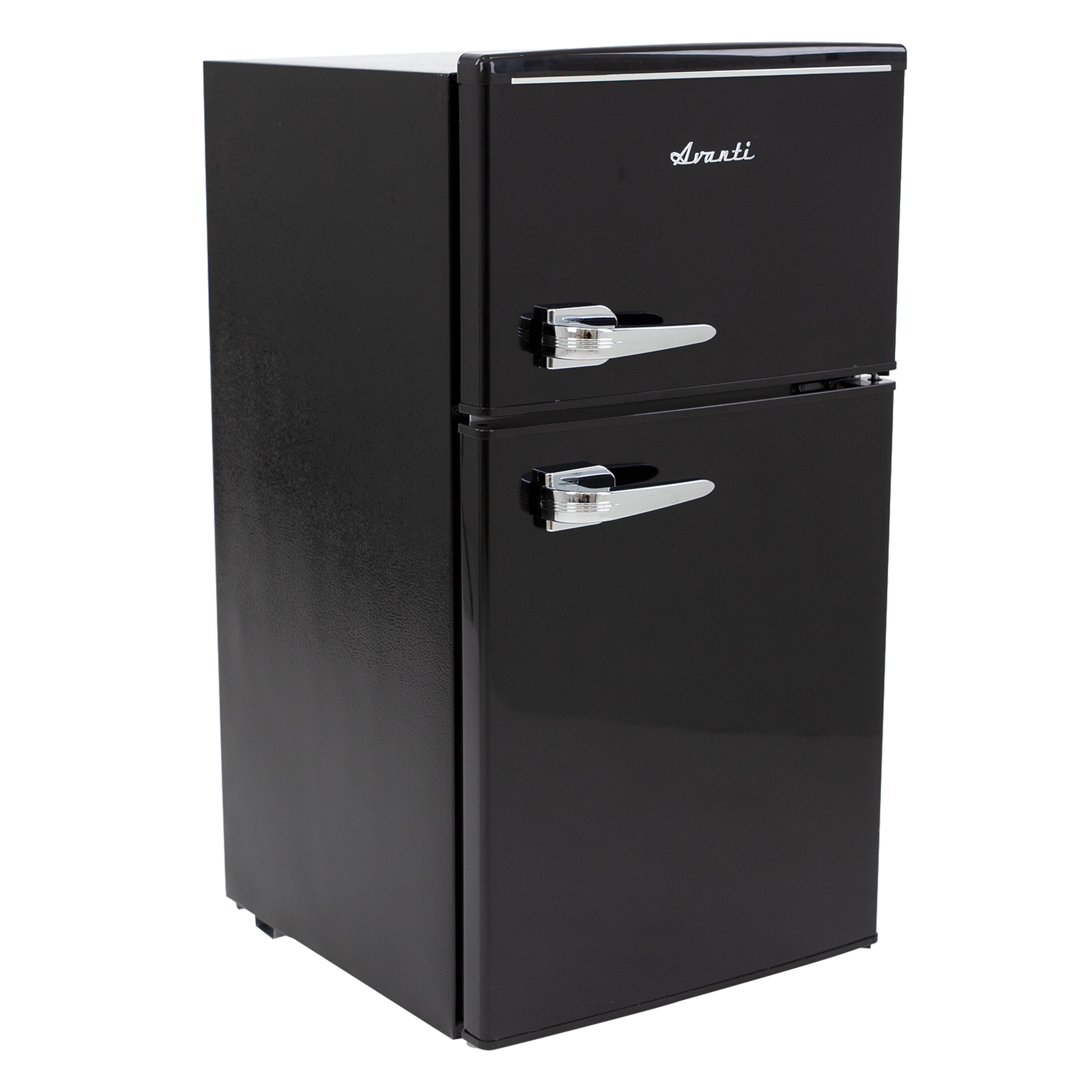 This retro-inspired compact refrigerator combines vintage charm with modern functionality, delivering a cool, colorful, and sophisticated aesthetic that enhances any setting. With a capacity of 3.0 cubic feet, this double-door freezer/refrigerator is the perfect space-saving solution for your home, dorm room, office, or recreational area. Its thoughtful design ensures that your favorite foods and beverages are always within reach, making it an ideal addition to small spaces where style and practicality matter most. The double-door design offers convenient access to all your essentials. The top freezer section provides ample space for storing frozen foods in bulk, helping you save money by reducing trips to the store. Meanwhile, the refrigerator section is designed to keep salads, fruits, snacks, and beverages fresh and easily accessible throughout the day. The manual defrost system allows you to maintain optimal cooling performance with minimal effort, giving you full control over the unit’s temperature settings. Storage is made simple with built-in door shelves and a beverage can dispenser. The door design accommodates a variety of items, including two-liter bottles, assorted condiments, and up to six 12-ounce cans, ensuring that your fridge stays organized and functional. Inside, two adjustable and removable glass shelves provide versatility in food storage, allowing you to customize the layout to suit your needs. These glass shelves are easy to clean and provide a clear view of your food items for added convenience. The fridge is equipped with mechanical temperature controls, allowing you to adjust the cooling settings quickly and easily with the turn of a dial. This feature ensures that your food and beverages are stored at the perfect temperature for maximum freshness. The retro-inspired exterior design adds a chic and timeless touch, making this compact fridge not only a practical appliance but also a stylish focal point in any room. Backed by Avanti’s 1-year manufacturer-limited warranty, this refrigerator offers reliability and peace of mind. Whether you’re looking to enhance your kitchen, upgrade your dorm, or add convenience to your office space, this compact fridge delivers on all fronts. Its combination of retro style, modern features, and compact efficiency makes it a standout choice for those who value both form and function.