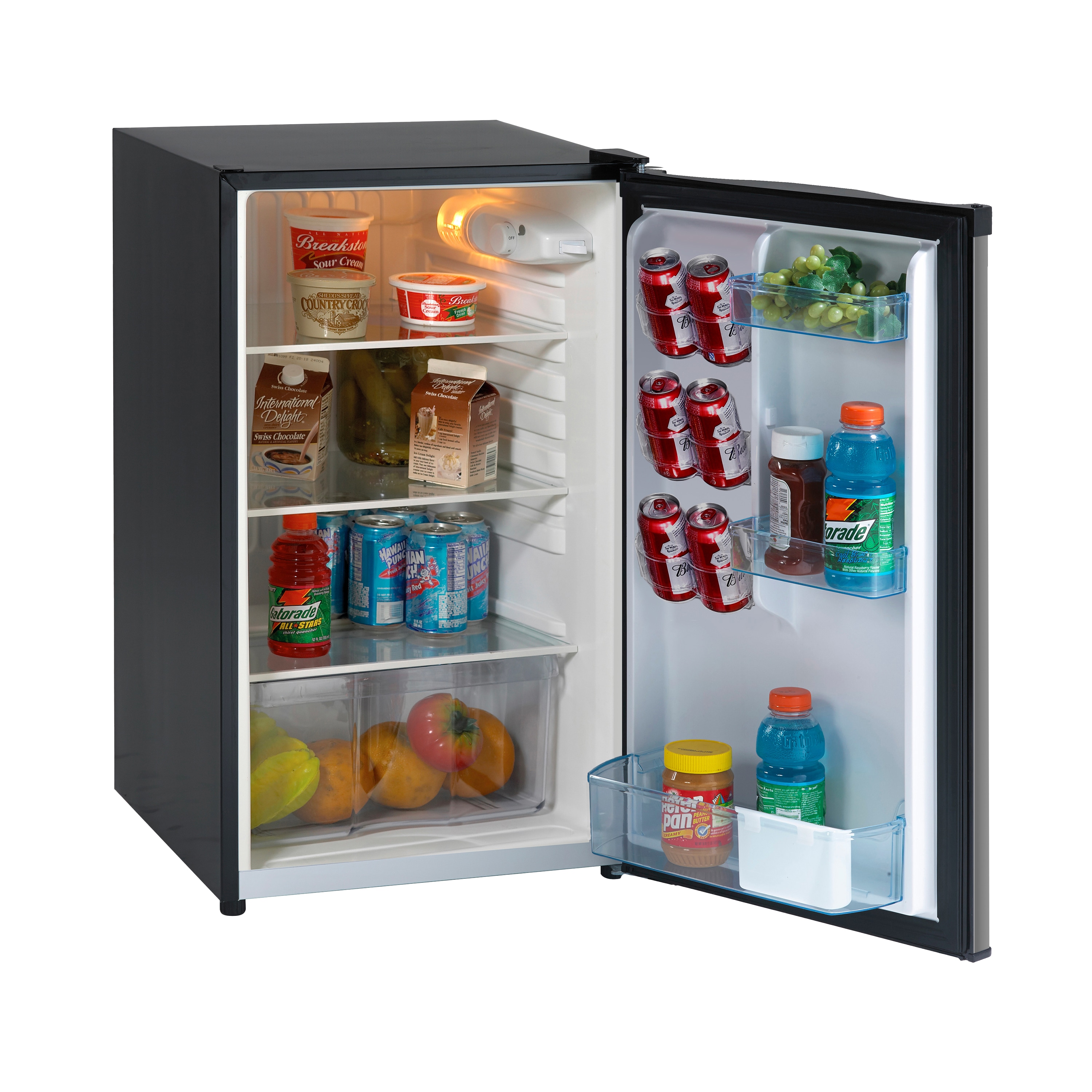 Keep your snacks and favorite beverages close by in the compact, 4.4 cubic foot refrigerator from Avanti. The perfect lockable mini fridge for the office, dorm, man cave, she shed, bar, bedroom, or anywhere you need a little extra refrigerator space. The door shelves can accommodate 2 liter and gallon bottles and six 12 ounce cans, as well as other drinks and condiments. Use the adjustable, removable glass shelving to arrange salads, fruits, snacks, and other foods for easy access throughout the day. This compact fridge features automatic defrost so your foods remain fresh and cold. Select the right settings for your items with the full range temperature control.