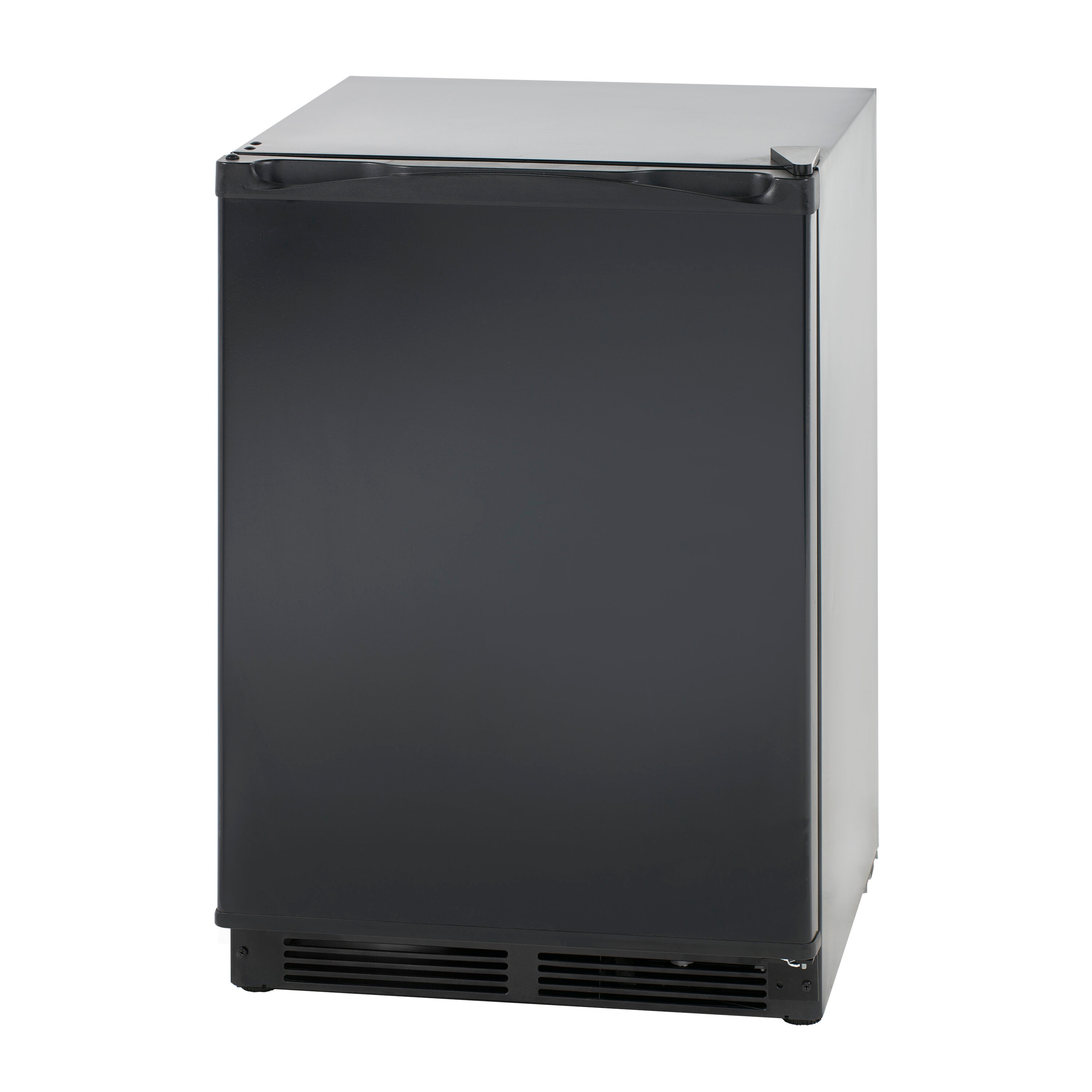 Keep your snacks and favorite beverages close by in the compact, 5.2 cubic foot black refrigerator from Avanti. The perfect mini fridge for the office, dorm, man cave, she shed, bar, bedroom, or anywhere you need a little extra refrigerator space. The full width and 2 half width door storage bins can hold up to 6 standard size cans while the lower bin storage can hold a gallon sized bottle. Use the adjustable shelf and crisper drawer with a glass cover to arrange salads, fruits, snacks, and other food for easy access throughout the day. This compact fridge features manual defrost so your food and beverages remain fresh and cold. Select the right settings for your items with the adjustable thermostat control.