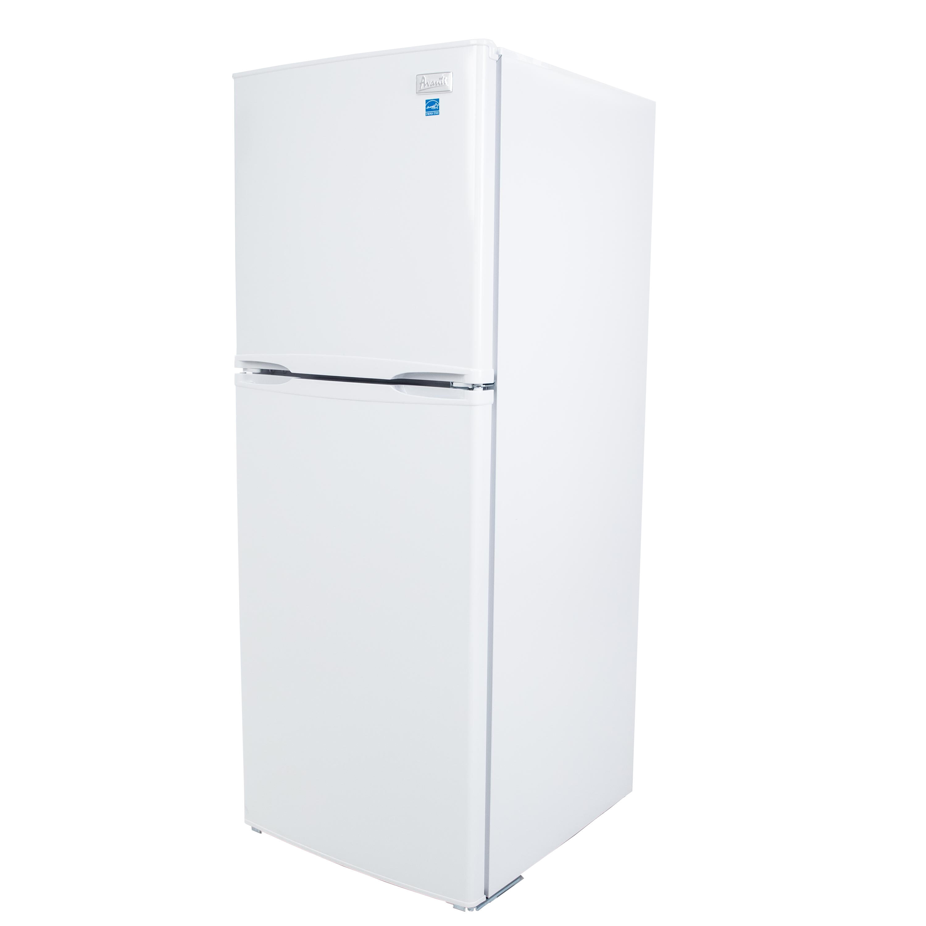Store your food in the compact, 7.0 cubic foot, white apartment-sized refrigerator with a top mounted freezer from Avanti. The perfect space saving fridge for a studio apartment, game room, tiny home, rental room, condo, vacation home, or anywhere you need a small refrigerator. This apartment sized fridge features full width door bins that hold 2 liter and gallon bottles, adjustable and removable shelving, and a see through crisper. Select the right settings for your items with the adjustable temperature control.