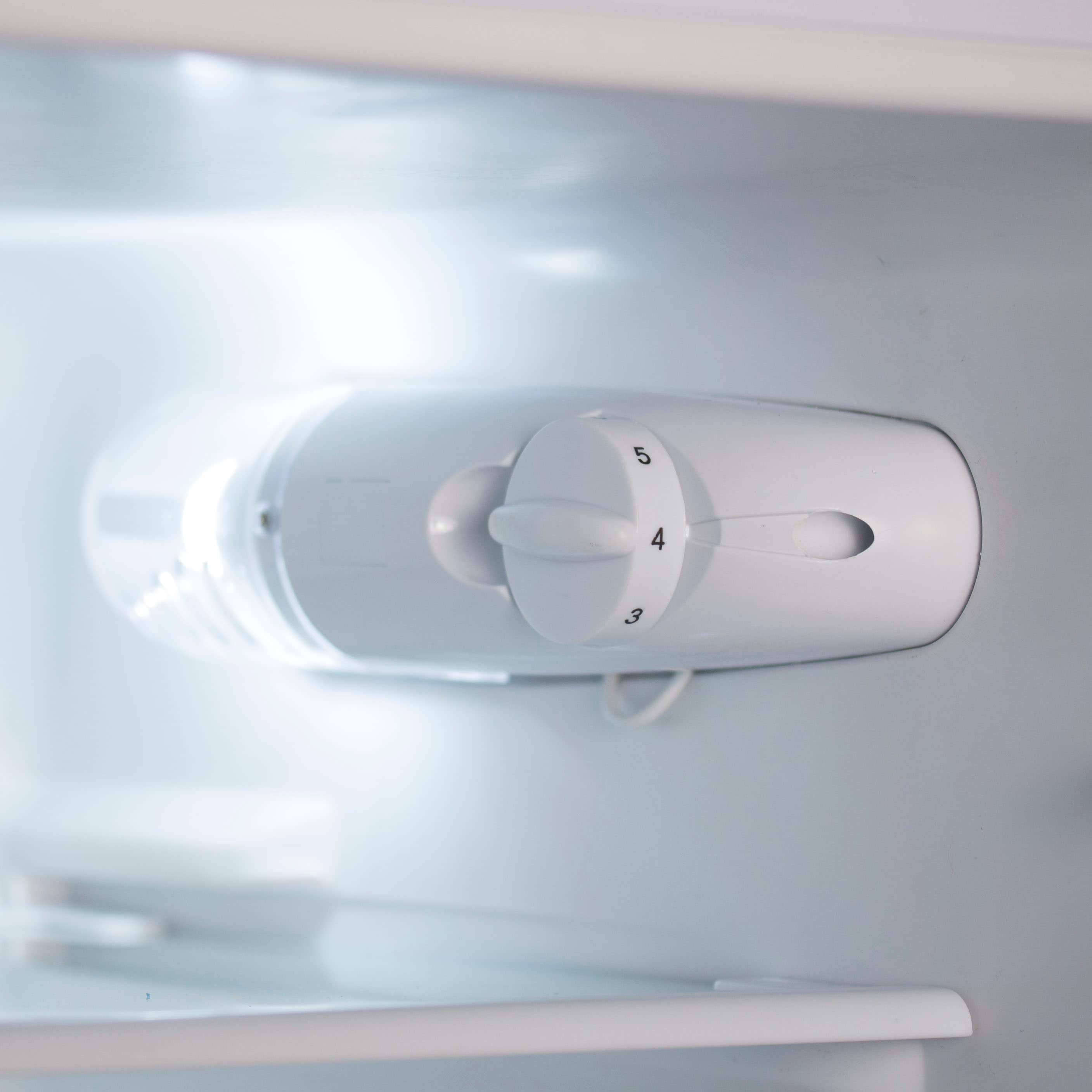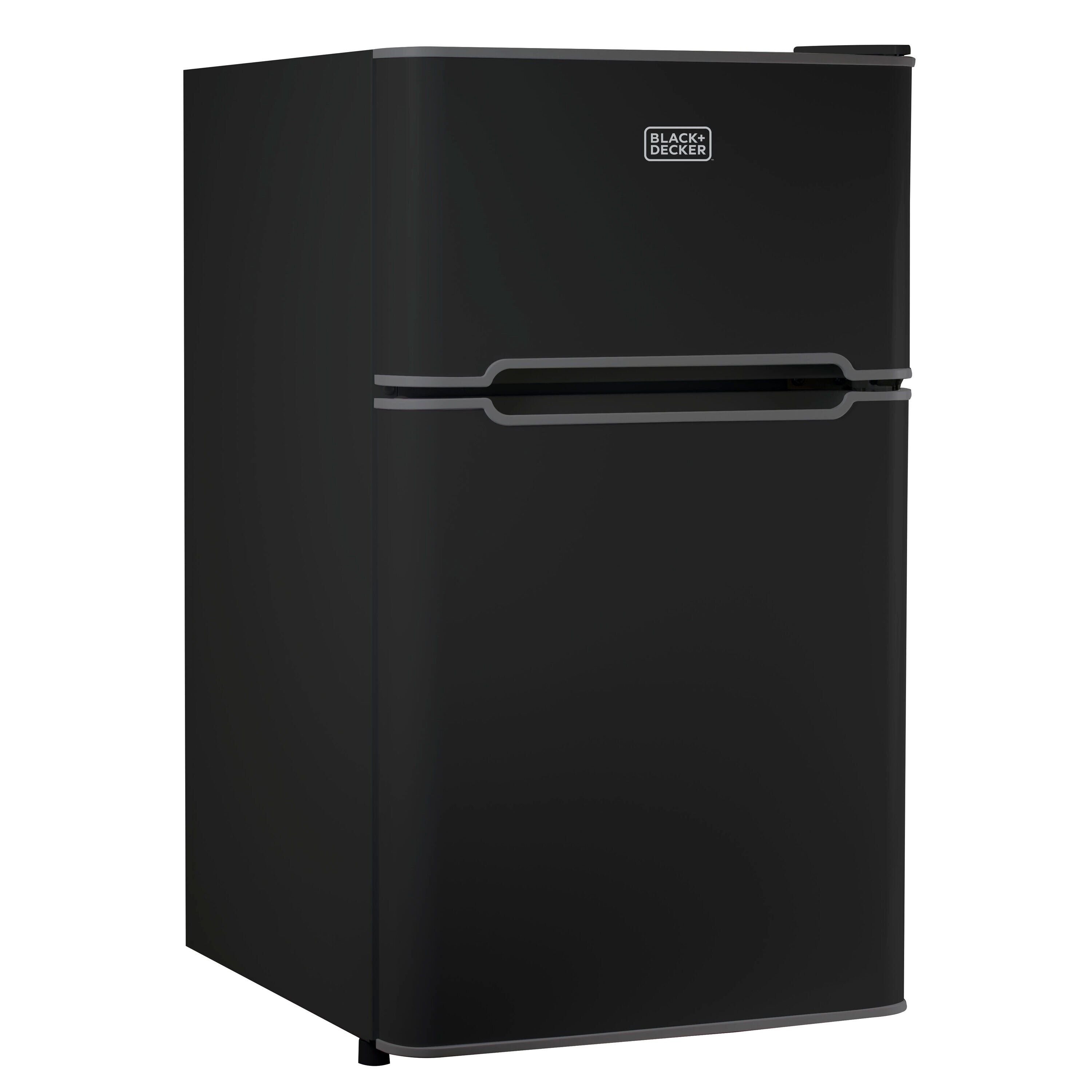 The mini fridge has a modern 2 door design that fits with style into any indoor living space. Adding convenience to any room for real-life practicality, it is perfectly compact without compromising interior storage space. You will be amazed by how much it fits. The free standing, flat back unit fits easily under counters and desks, or in room corners. The adjustable temperature control, 2 removable glass shelves, reversible door, and quiet operation make daily life a lot easier with one small appliance.