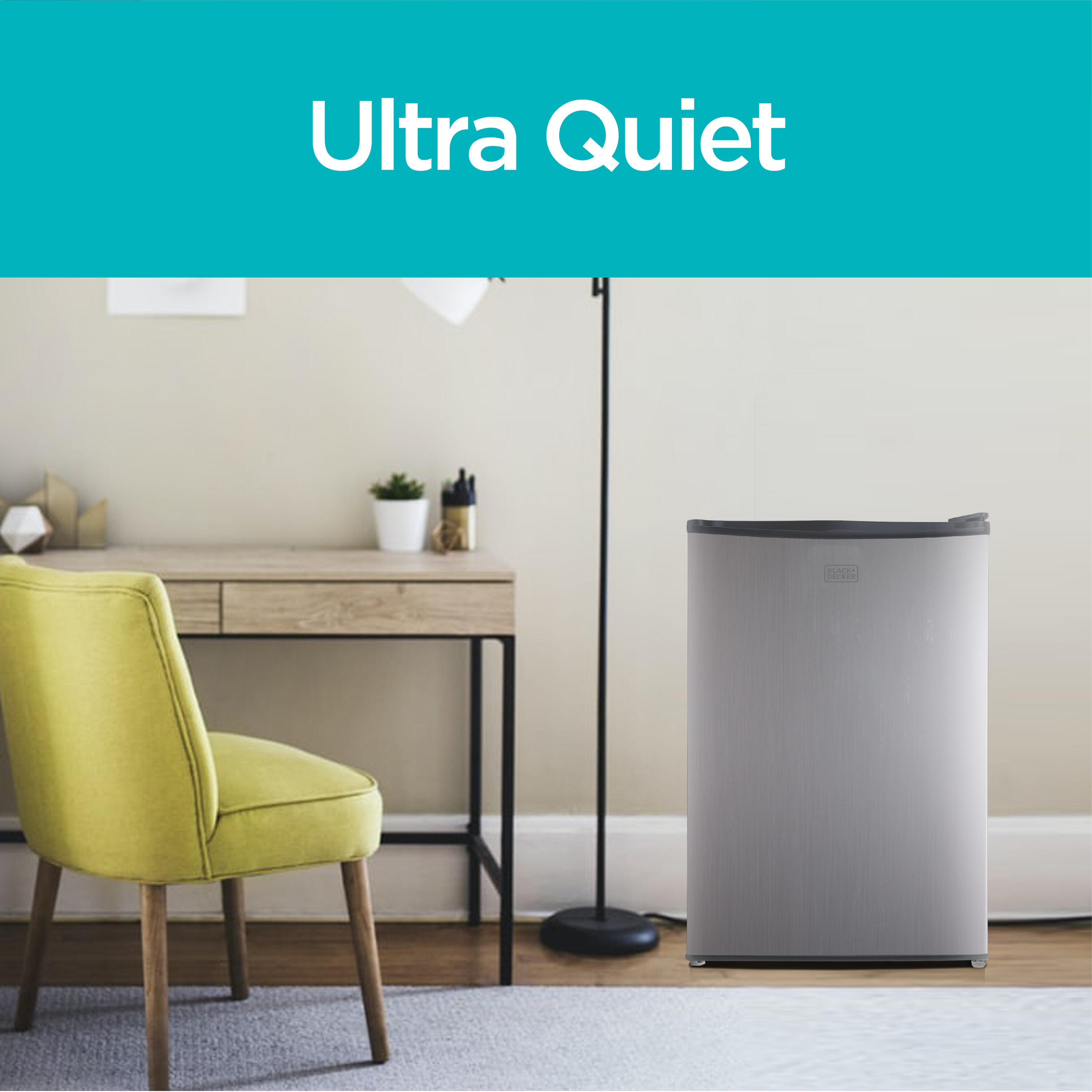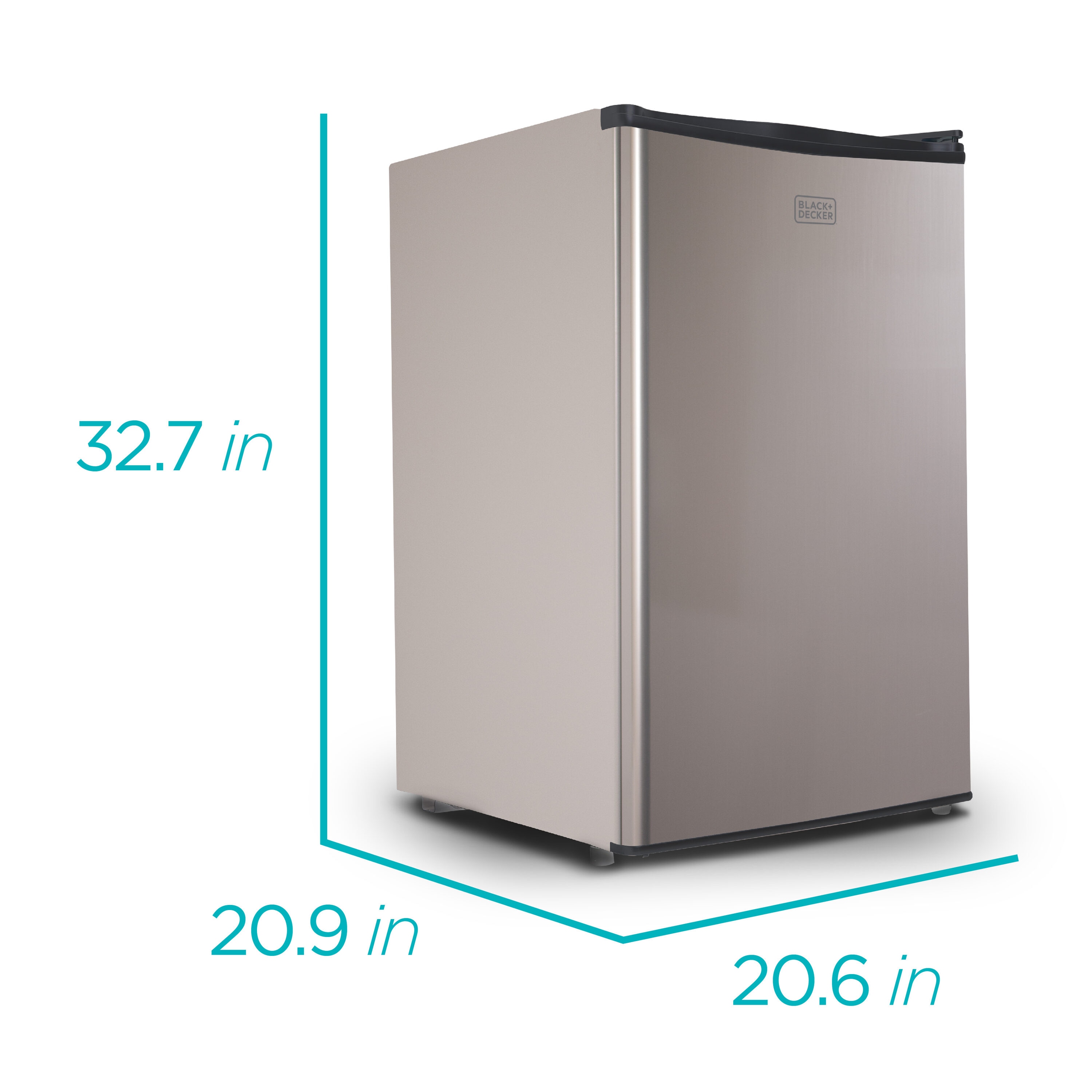 This BLACK+DECKER energy star certified compact refrigerator was perfectly designed for all small places; college dorm room, office, bedroom, workshop or anywhere you may need a compact refrigerator to keep your beverages and food cold. Similar to a regular refrigerator it comes with a full width freezer compartment with ice cube tray, a full width crisper with cover, recessed door handle, manual defrost and adjustable thermostat control. Easily accommodates 2 liter and other tall bottles.