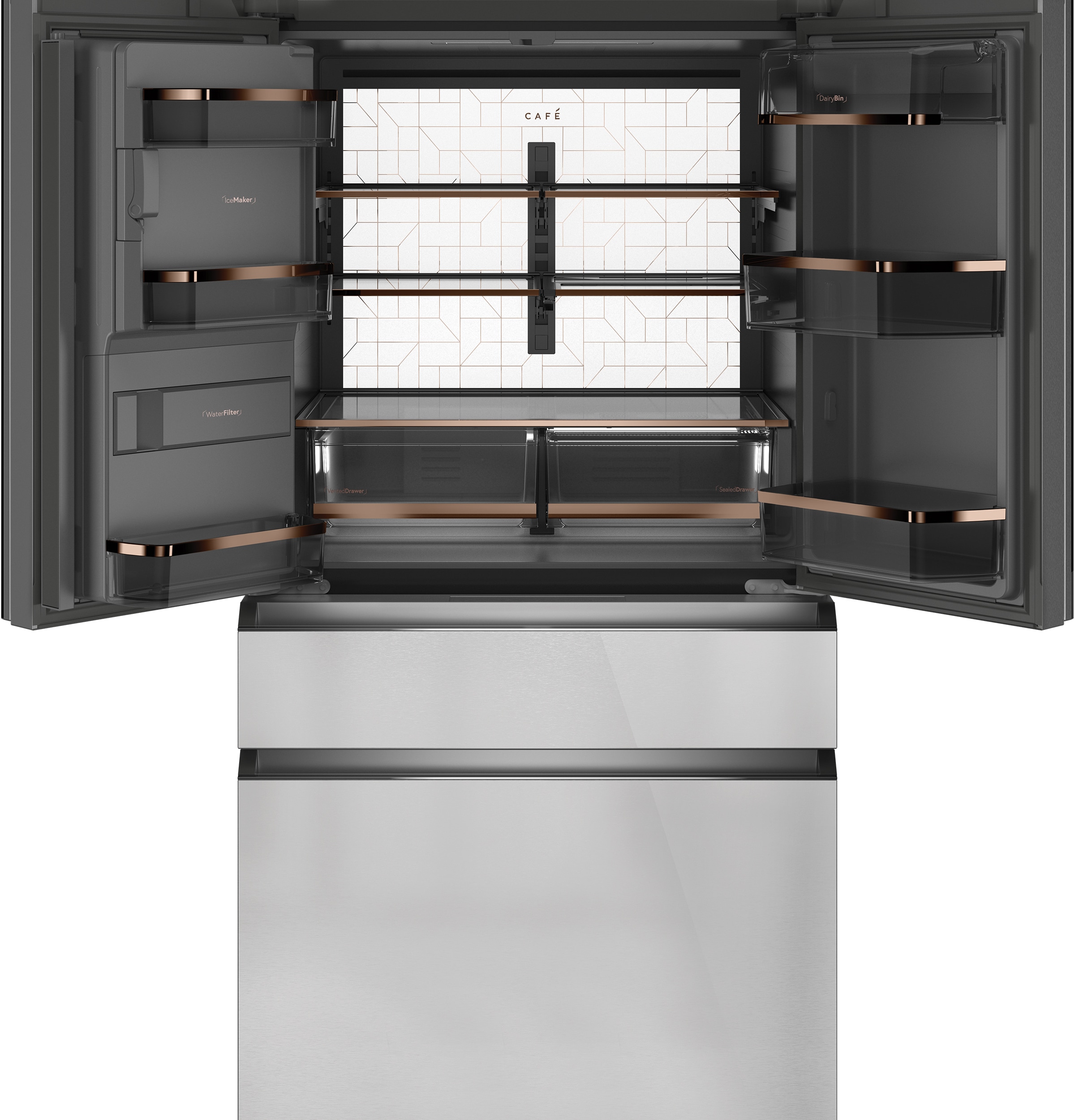 Flatbread Freezer Compartment – use the slim, full-width freezer compartment for flatbread, pizzas and other uniquely shaped frozen items, which is part of a three-level, freezer storage system of sliding shelves and trays