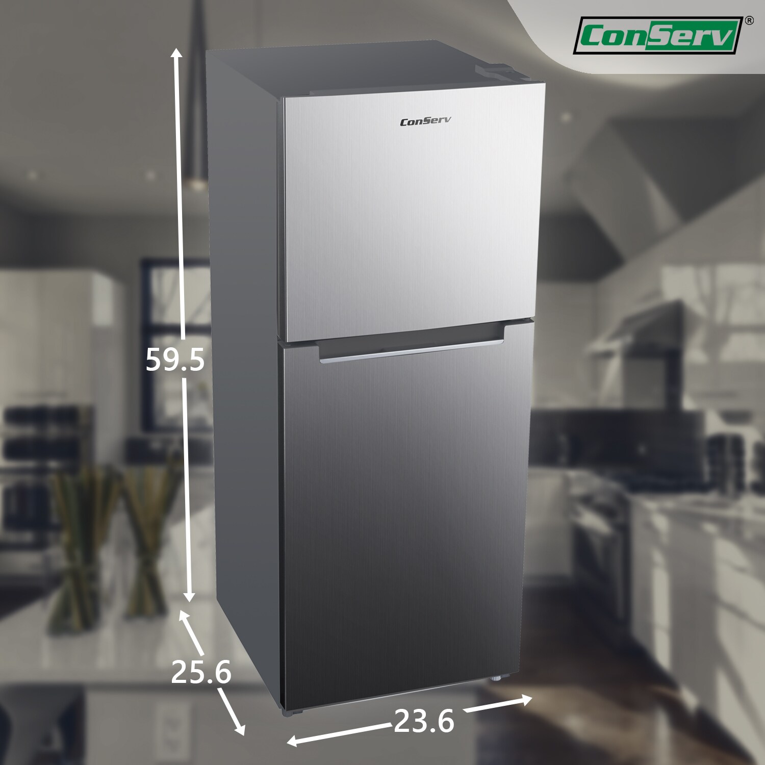 The Conserv MDRF1010ESE is an ideal appliance for all type of households. It offers a 10 cu.ft. capacity – 7.4 cu.ft. Fresh Food Capacity and 2.7 cu.ft. Freezer Capacity. This elegant free-standing refrigerator measures 59.5 x 23.6 x 25.6 inches (HxWxD)) and is packed with features such as Reversible Door, Freezer and Refrigerator Door racks and Flush Back design. This Stainless finish refrigerator will help you maximize your use of energy and space—all without sacrificing the features you love.