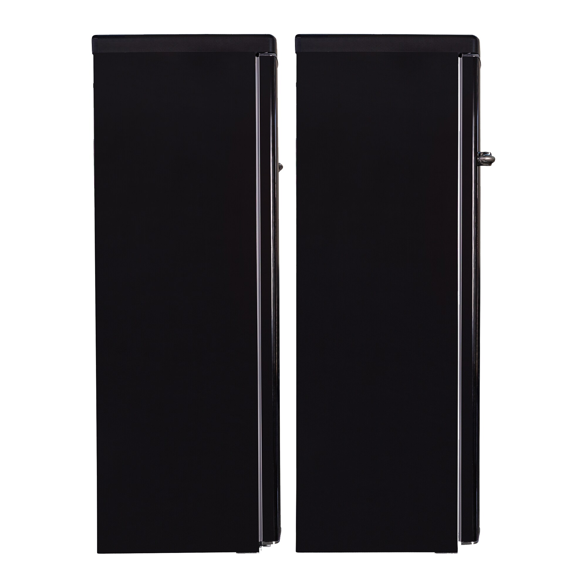 Achieve the perfect level of “cool” — both in style and temperature — with the Retro Refrigerator Freezer Pair. Combining two convenient models (the FF 830 and the RR 1100), each design works to meet your needs. The FF 830 is equipped with six drawers and one flap, while the RR 1100 has five shelves and one drawer. Both are built with appealing retro classic looks and come in red, black, and cream colors. Reaching the optimum level of icy cold, the FF 830 freezer has a capacity of 8.3 cubic feet, and has an adjustable temperature range of 3.2° F – 11.2° F. It is frost free, Energy Star rated, and has a replaceable door gasket. Like the refrigerator side, it runs on powerful compressor cooling and has adjustable feet. The RR 1100 side of the bundle has several of its own unique features. Boasting a capacity of 11.12 cubic feet, there is ample space for storing your favorite foods and beverages. Temperature controls range between 35.6° F – 46.4° F, and it has a crisper for extra storage. There is an interior light to illuminate the contents of the refrigerator, and adjustable shelves for perfect placement. The entire combo measures in at 71.93 x 48 x 27.83 (HxWxD).