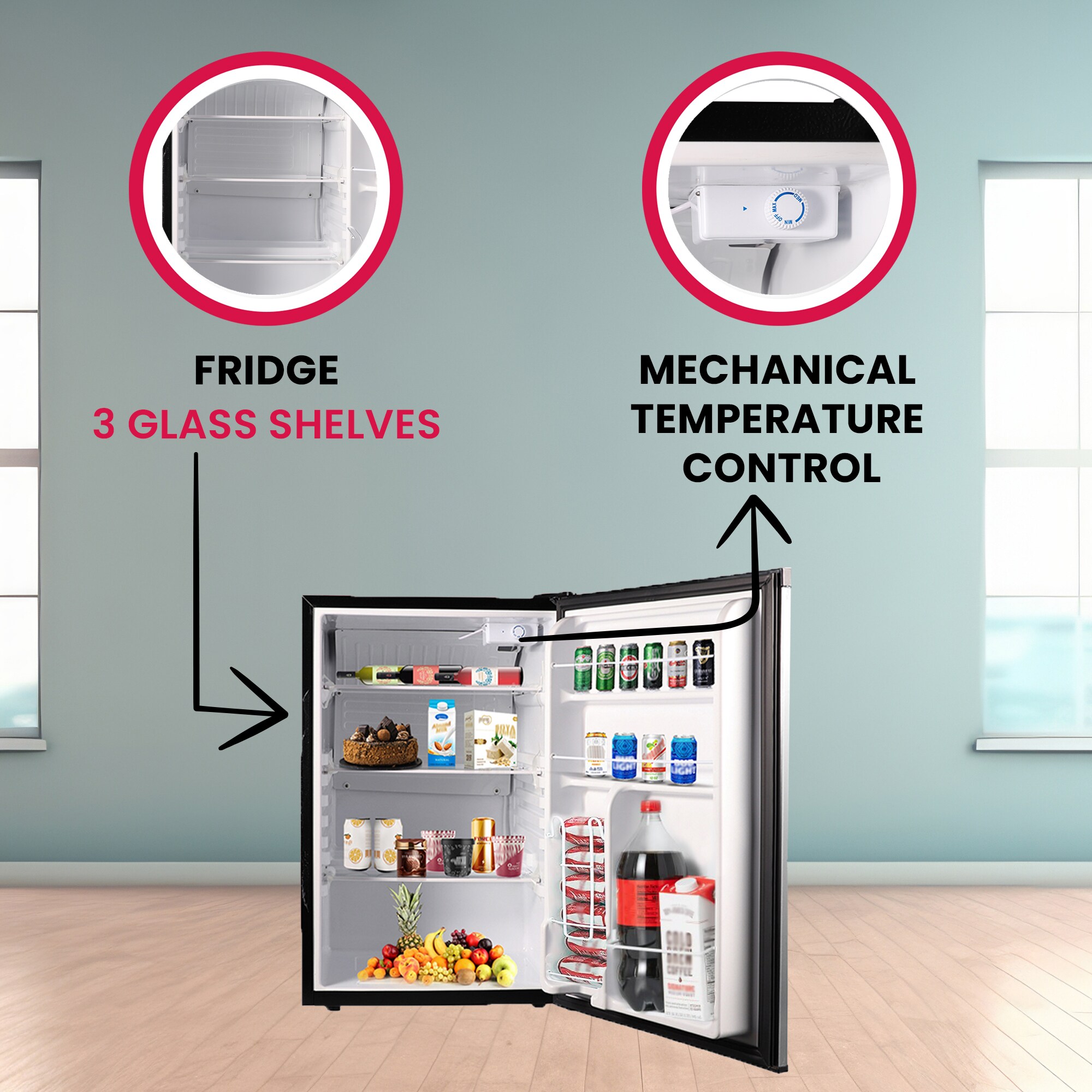 MECHANICAL TEMPERATURE CONTROL – Adjust the temperature so you can keep your food fresh and chilled in the most environmentally friendly way