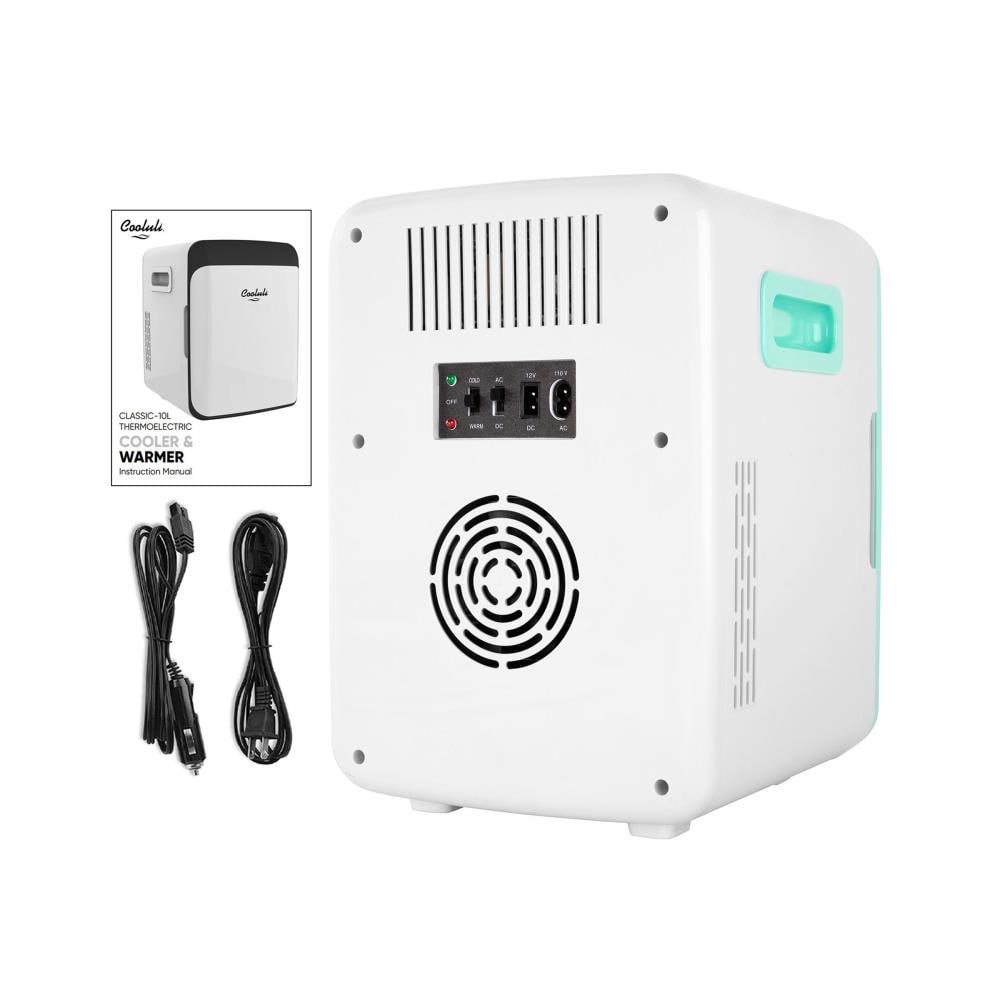 The Cooluli Classic 10-liter Thermoelectric Cooler/Warmer Mini Fridge is durable, efficient, and stylishly compact. The Classic 10-L features upgraded foam for better insulation and goes from cooling to warming with one quick switch. It’s perfect anywhere you need to store food, snacks, drinks, breast milk, insulin, skincare and beauty products, medications, and other essentials.NThe Classic’s handy, lightweight profile has a roomy 10-liter capacity and the molded inset handles on each side make carrying it a breeze. Fits up to twelve 12-oz. soda/beer/drink cans or sixteen 20-oz. bottles! The Classic-10L mini refrigerator is perfect in your home, countertop, business/office, dorm, hotel room, car/motor vehicle, or on your next road trip or tailgate party!NExclusive EcoMax Technology features a unique semiconductor operation that prevents frost, is quiet, energy efficient, and cost-effective—when maximum efficiency is reached, the Classic goes into ECOmode—saving you money! It’s 100% environmentally friendly and uses no refrigerants or Freons. The Classic-10L features a one-year limited warranty and Cooluli’s unparalleled customer service.