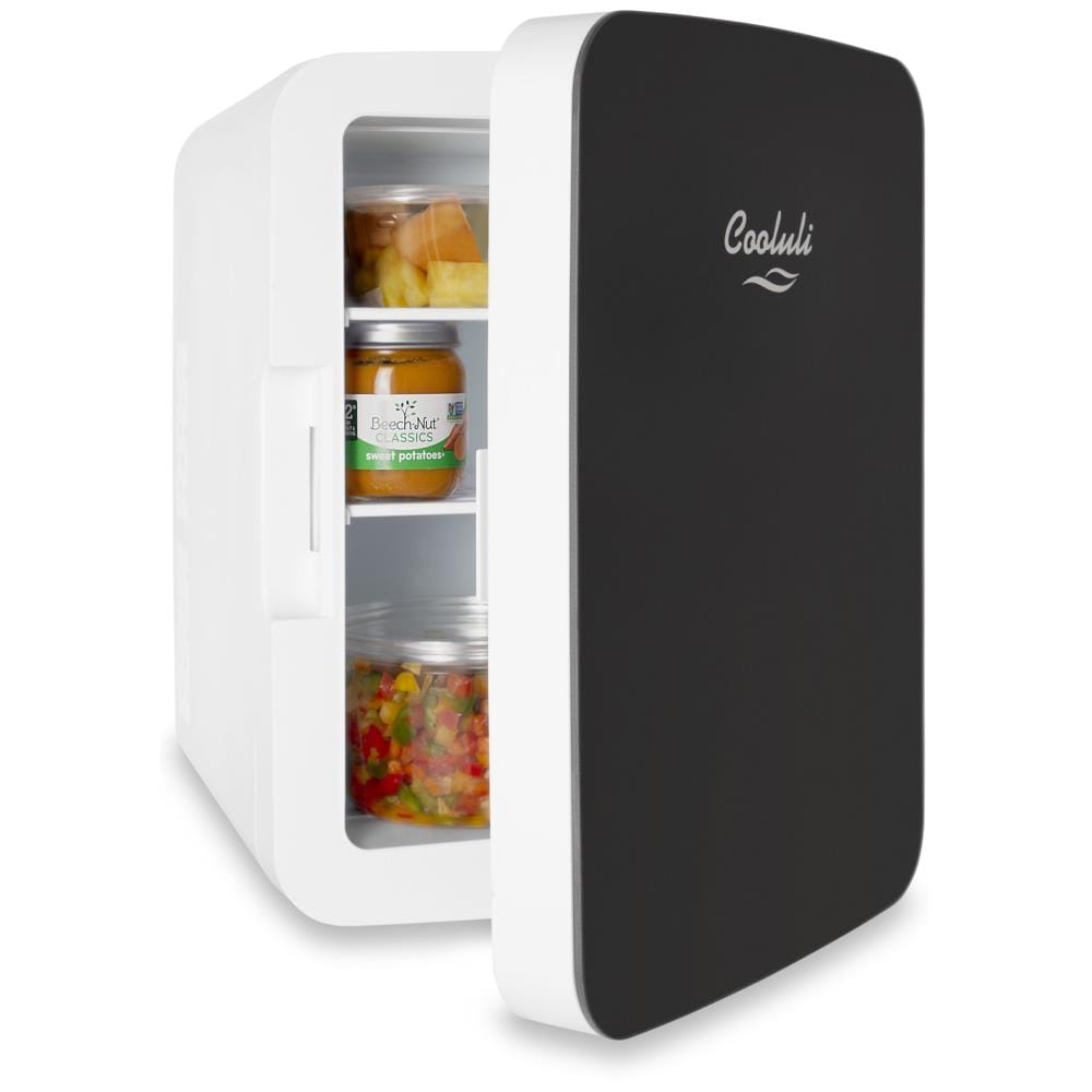 The Infinity-10L Cooler/Warmer Mini Fridge boasts efficiency and durability in a stylish compact unit. The all-purpose, thermoelectric Infinity features upgraded foam for better insulation and goes from cooling to warming with one switch. The Infinity is perfect for storing food, snacks, drinks, breast milk, insulin, skincare, personal care and beauty products, and medications.NNIts compact design features a 10-liter capacity, tempered glass front, and the molded foldaway top handle makes transport a breeze. Fits up to twelve 12-oz. soda/beer/drink cans! Use it everywhere—the Infinity’s stylish construction matches any décor, making it the perfect addition to your home, countertop, business/office, dorm, hotel room, car/motor vehicle, or on your next road trip or tailgate!NNExclusive EcoMax Technology features Cooluli’s unique cooling system that helps prevent frost; it’s also powerful, quiet, and cost-effective—when maximum efficiency is reached, the Infinity goes into ECOmode—saving you money! 100% environmentally friendly, it uses no refrigerants or Freon. It’s dual voltage and works anywhere in the world. This unit features a 1 Year Limited Warranty and Cooluli’s unparalleled customer service.