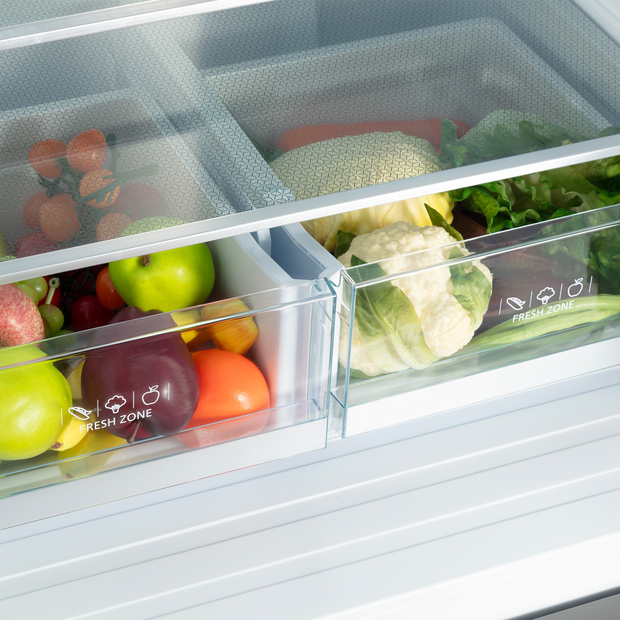 Fully enclosed crisper drawers help keep fruits and vegetables fresher for longer