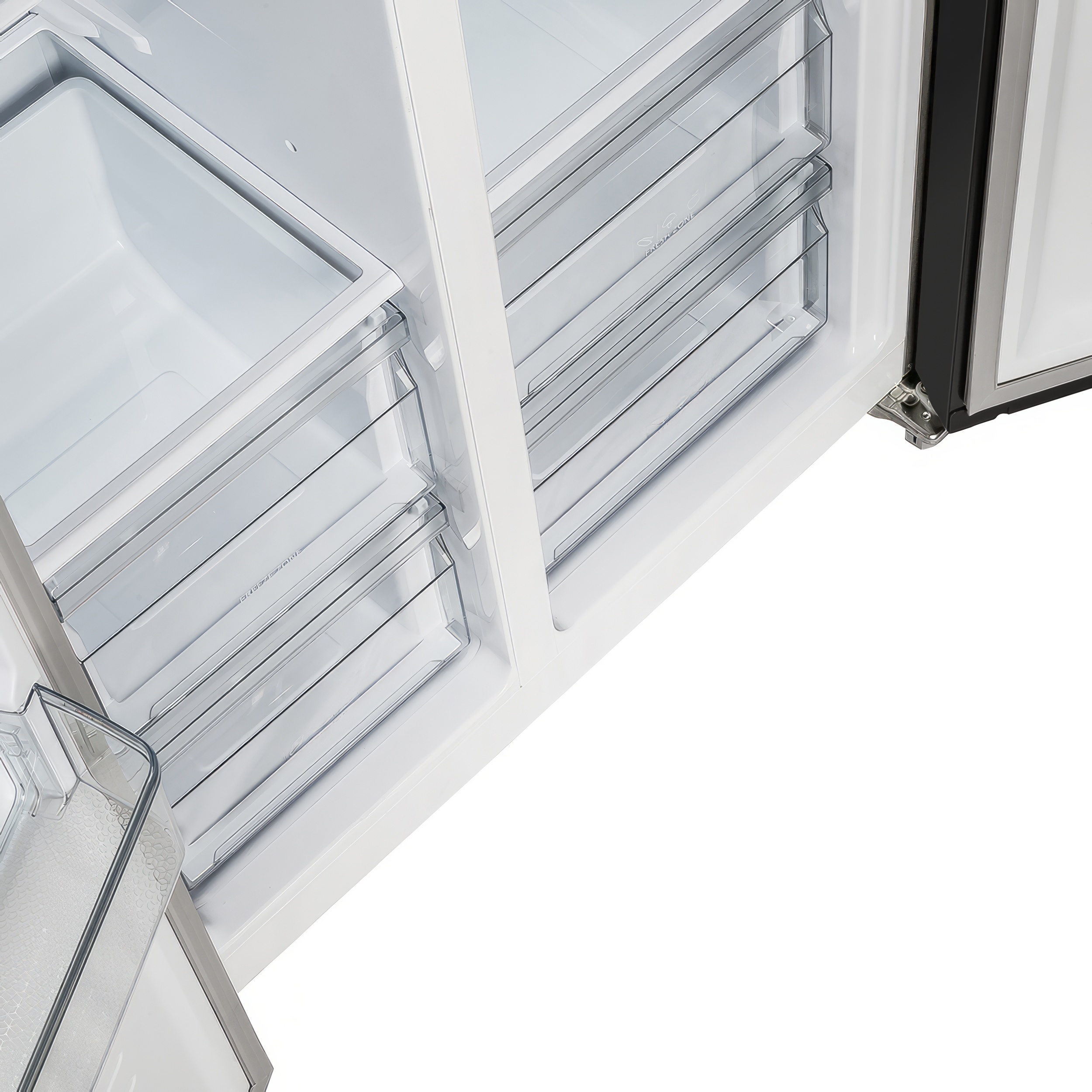 Fresh food compartment includes 4 spill-proof shelves, 3 door bins and 2 drawers