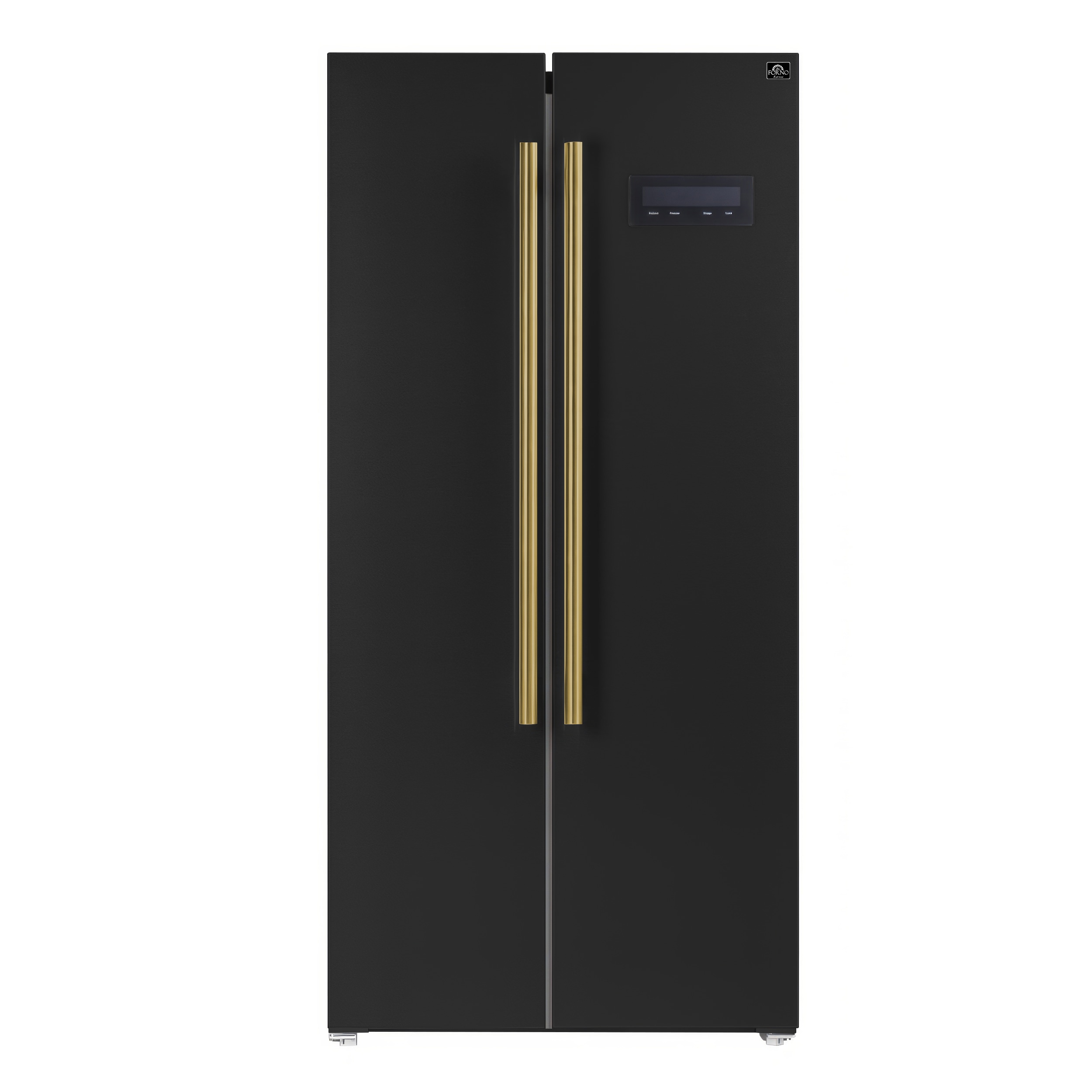 Introducing the Espresso Salerno 33-inch black-finished refrigerator with antique brass and stainless steel handles, seamlessly blending style and functionality. Boasting a Fresh Food capacity of 9.54 cu.ft. and Freezer capacity of 6.08 cu.ft., it offers ample space with efficient organization. The Fresh food compartment includes 4 spill-proof shelves, 3 door bins, and 2 drawers, while the Freezer features 4 spill-proof glass shelves, 2 storage drawers, and 3 door bins. Effortlessly adjust temperatures with LED Touch controls. Fast Cool and Fast Freeze preserve freshness with rapid temperature setting. High-efficiency LED lighting prevents spoilage, illuminating every corner. The compressor inverter ensures energy efficiency, quiet operation, and precise temperature control. See-through drawers and door bins enhance organization. Upgrade your kitchen with the Espresso Salerno – where innovation meets elegance, guaranteeing freshness at your fingertips.