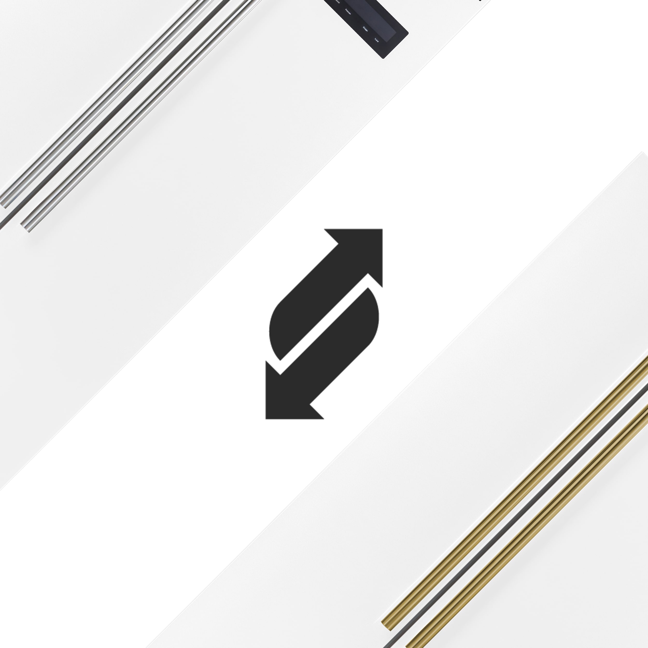 Sleek white-finished doors with antique brass handles provide a stylish and customizable option