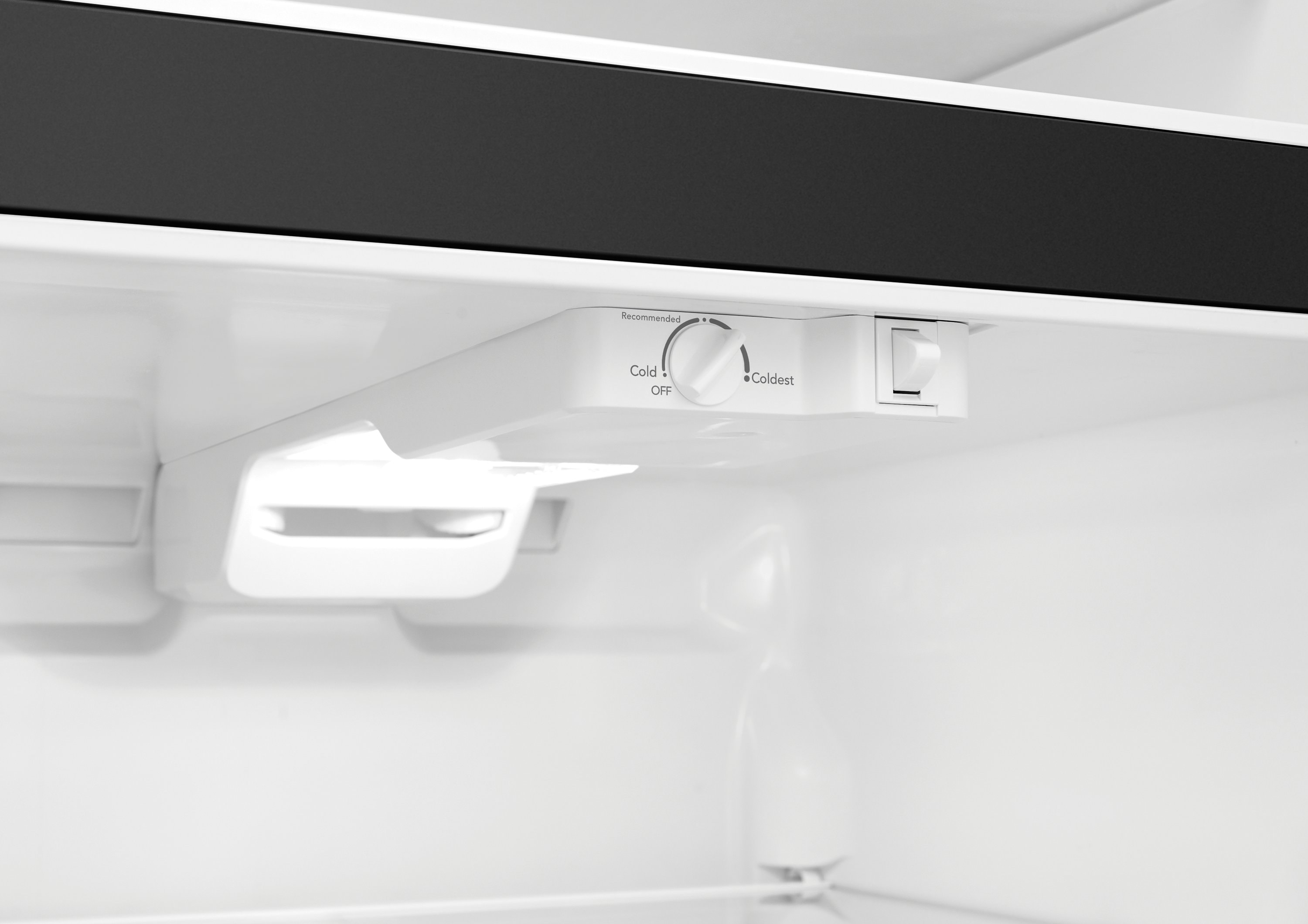 This Frigidaire 18 cu. ft. top freezer refrigerator includes spacious interior storage options designed for busy families, including generous door bins and adjustable full-width glass shelving. Our humidity-controlled crispers keep produce fresh for longer, allowing you to waste less and save money.