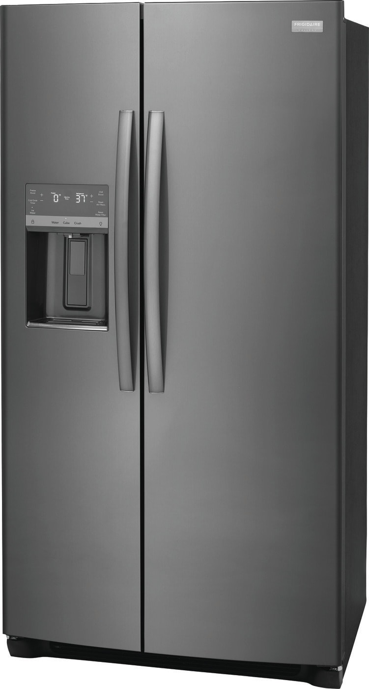 This 22.3 cu ft Frigidaire Gallery side by side refrigerator helps prevent produce from spoiling with our advanced CrispSeal Plus Crisper technology that keeps produce fresh, plus an added filter reduces the gas that causes produce to ripen faster. Keep your food fresh and reduce freezer burn with our variable speed compressor (EvenTemp Cooling System) that reacts quickly to temperature fluctuations and constantly circulates cold air throughout the fresh food and freezer compartments. Find a place for everything with our flexible organization system, including three removable, dishwasher-safe glass shelves, adjustable gallon door bin, and a slim design ice maker that holds 9 pounds of ice without taking up valuable shelf space.