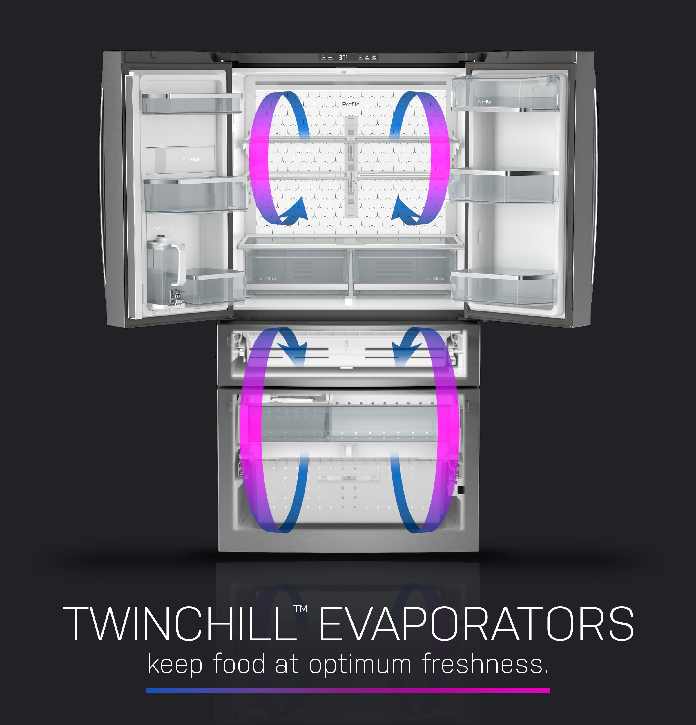TwinChill™ Dual Evaporators – this advanced technology refrigerator features TwinChill™ Dual Evaporators to create separate climate zones in the fresh food and freezer sections, keeping foods at their optimum freshness