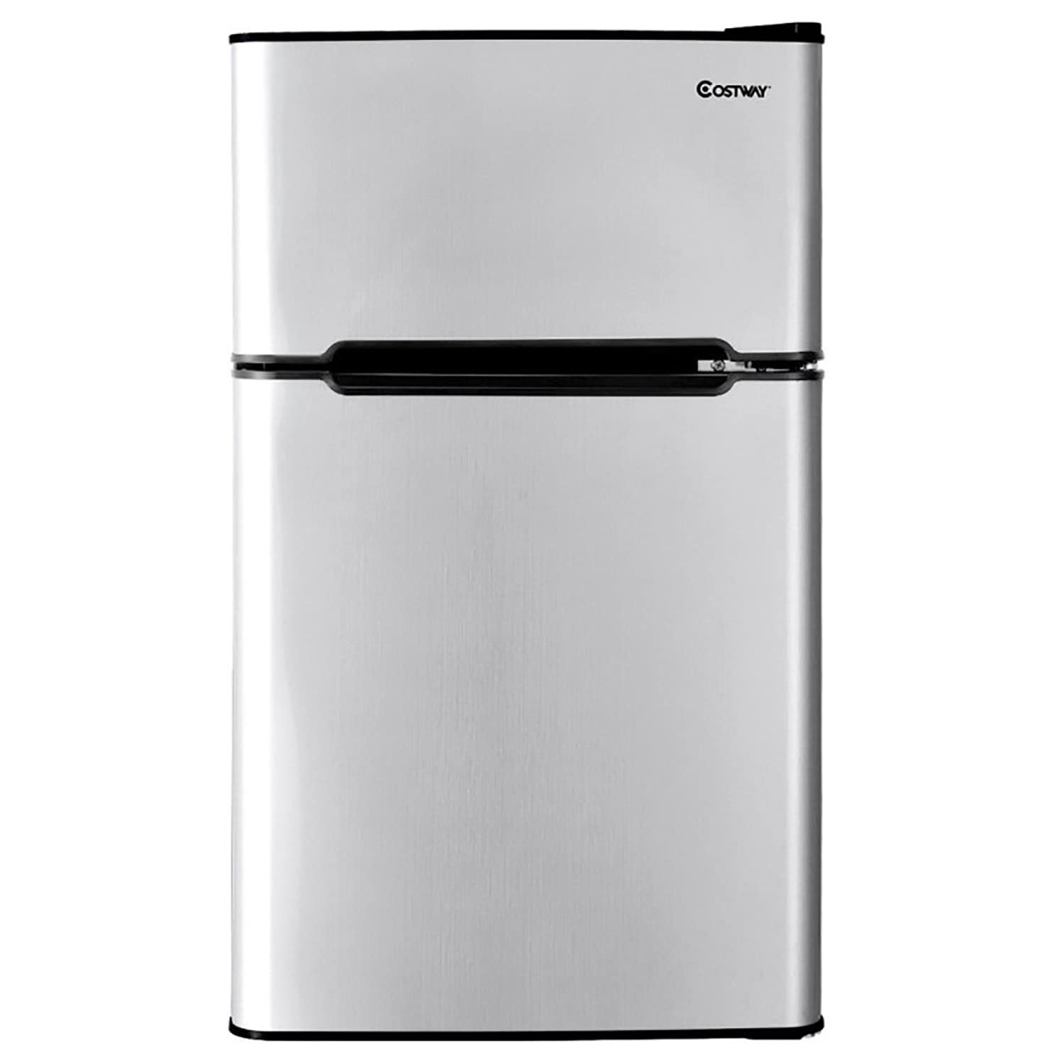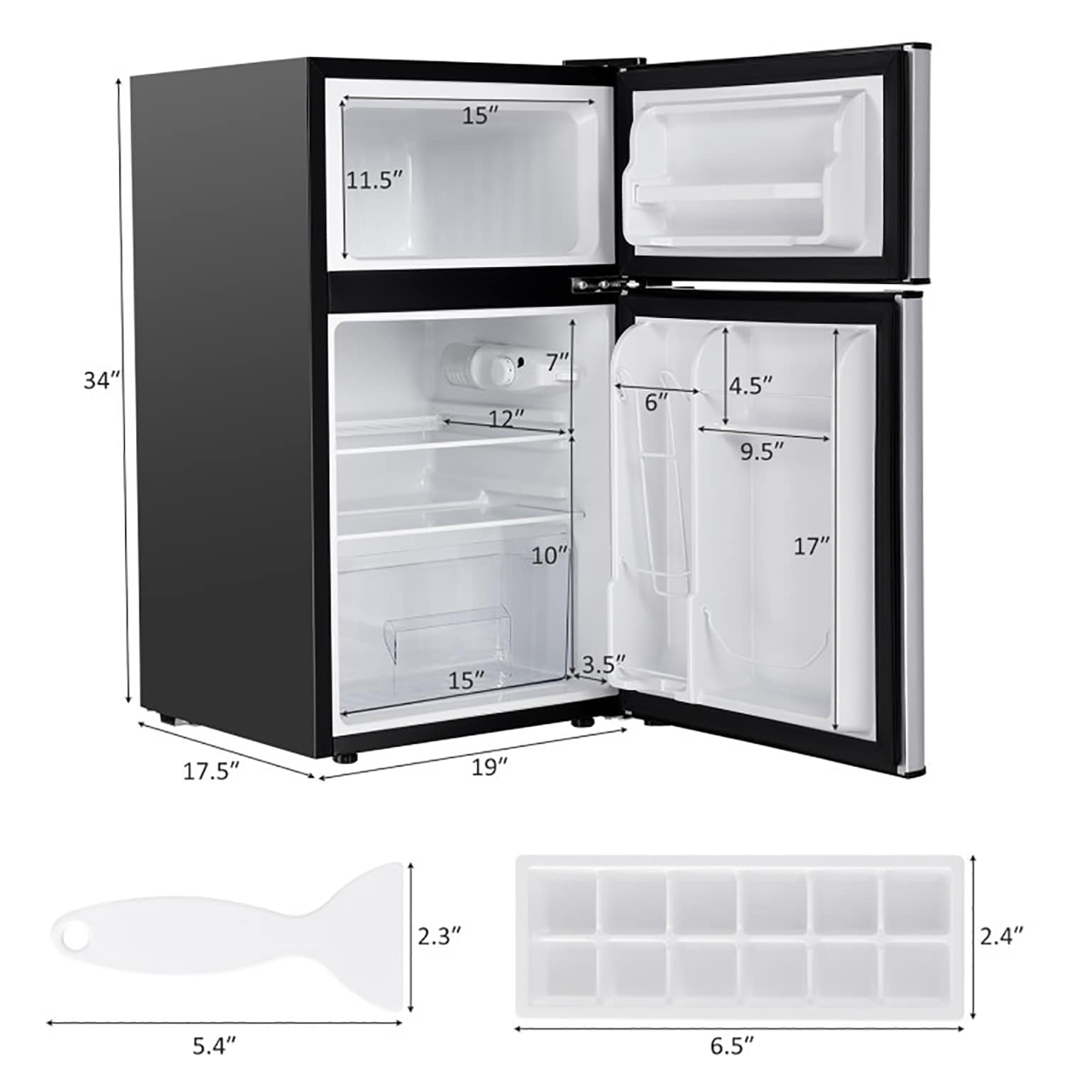 Large 2.2 cu. ft. fresh food capacity gives you the space to keep foods organized and 1 cu. ft. freezer capacity give you room to store frozen foods. And the two exterior doors allow you to access the freezer or the refrigeration compartment.