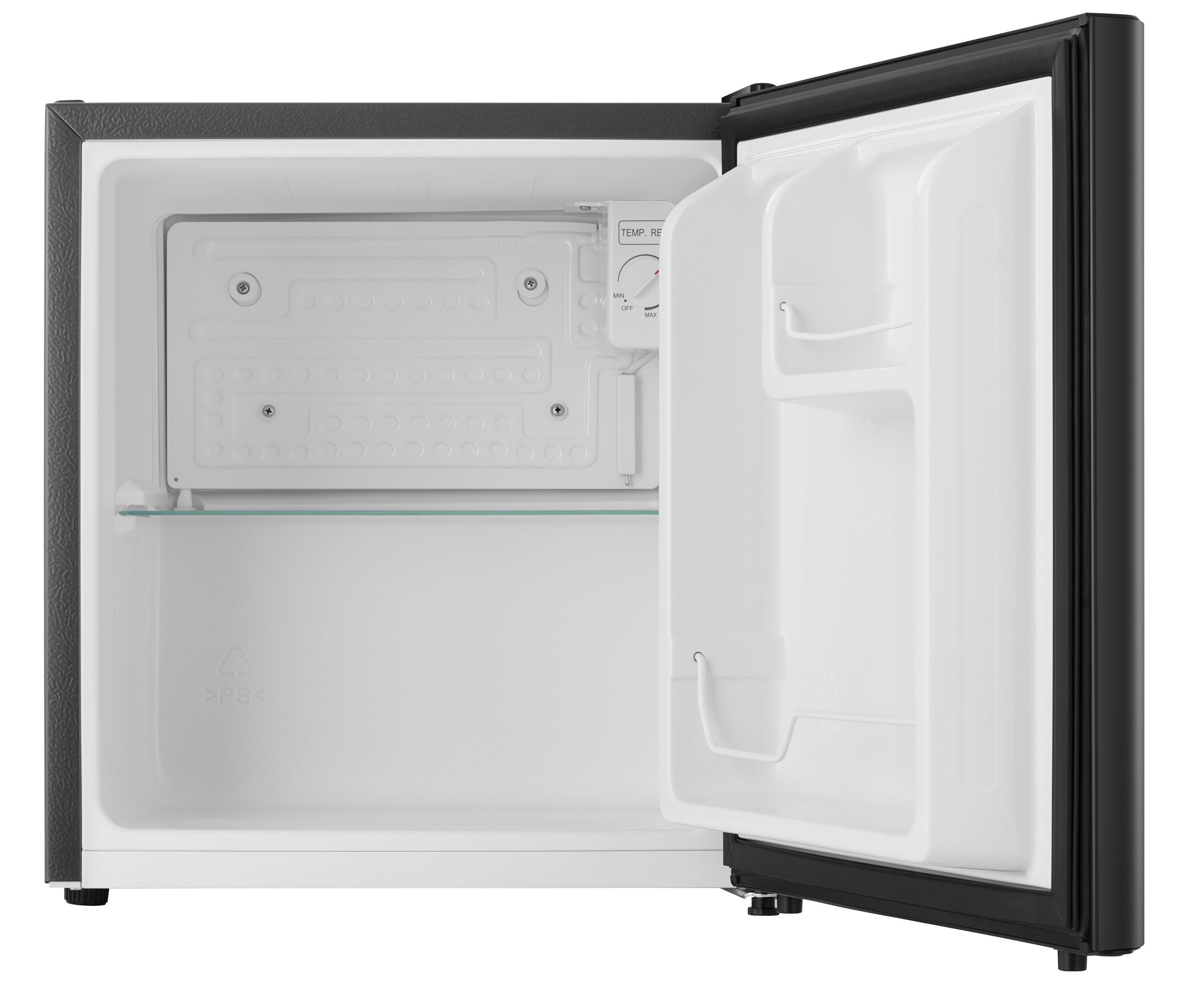 This new 1.6 cu. ft. black mini fridge HRC016ABE is perfect for college dorms, break rooms, or just extra storage for your home and office space. New sleek door design with round edge adds elegance to your space. However, the sleek and stylish design does not compromise its functionality. 2 L beverage storage allows you to store beverages and frees up space in the rest of the fridge. The adjustable legs and reversible door design allow for placement of this mini refrigerator virtually anywhere you need it. Thanks to the 43dB ultra quiet operation, you still get a peaceful sleep though it’s right next to you bed or desk…!