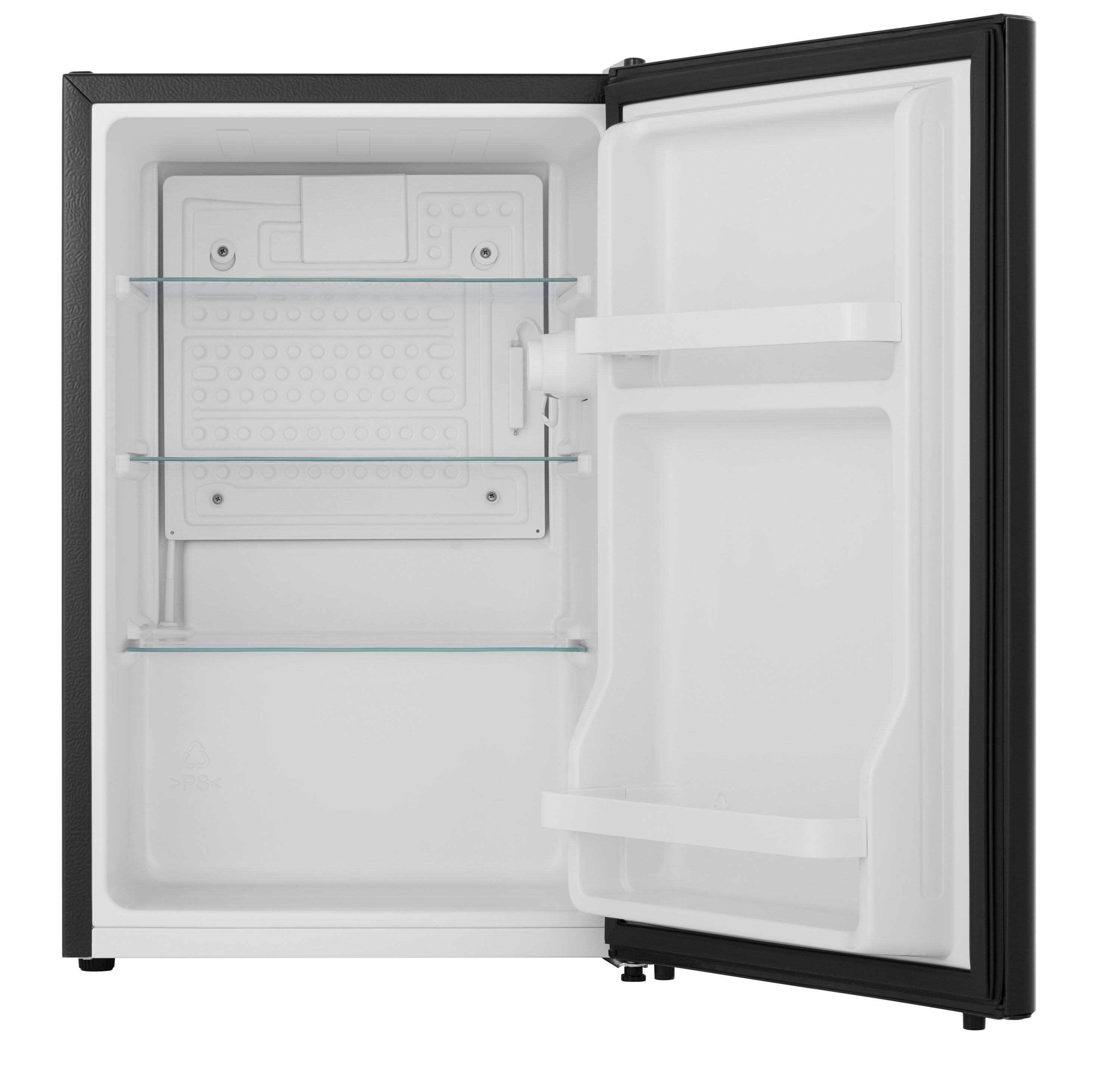 This new 2.5 cu. ft. black mini fridge HRC025ABE is perfect for college dorms, break rooms, or just extra storage for your home and office space. New sleek door design with round edge adds elegance to your space. However, the sleek and stylish design does not compromise its functionality. 2 L beverage storage allows you to store beverages and frees up space in the rest of the fridge. The adjustable legs and reversible door design allow for placement of this mini refrigerator virtually anywhere you need it. Thanks to the 43dB ultra quiet operation, you still get a peaceful sleep though it’s right next to you bed or desk…!