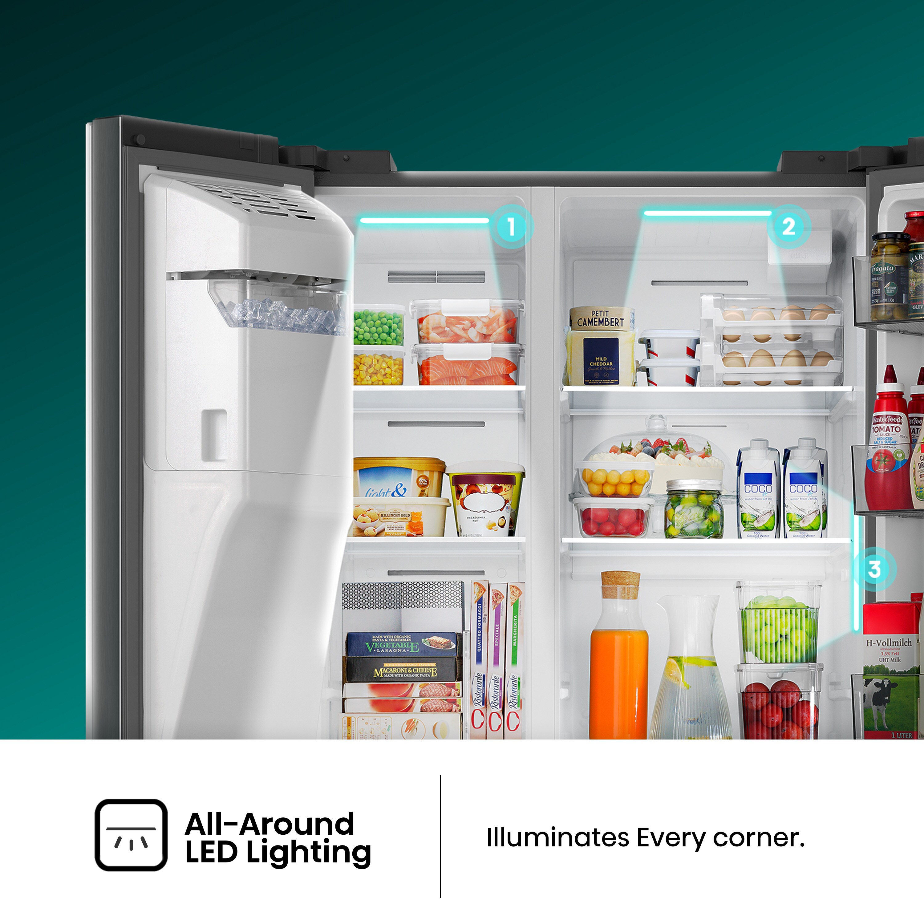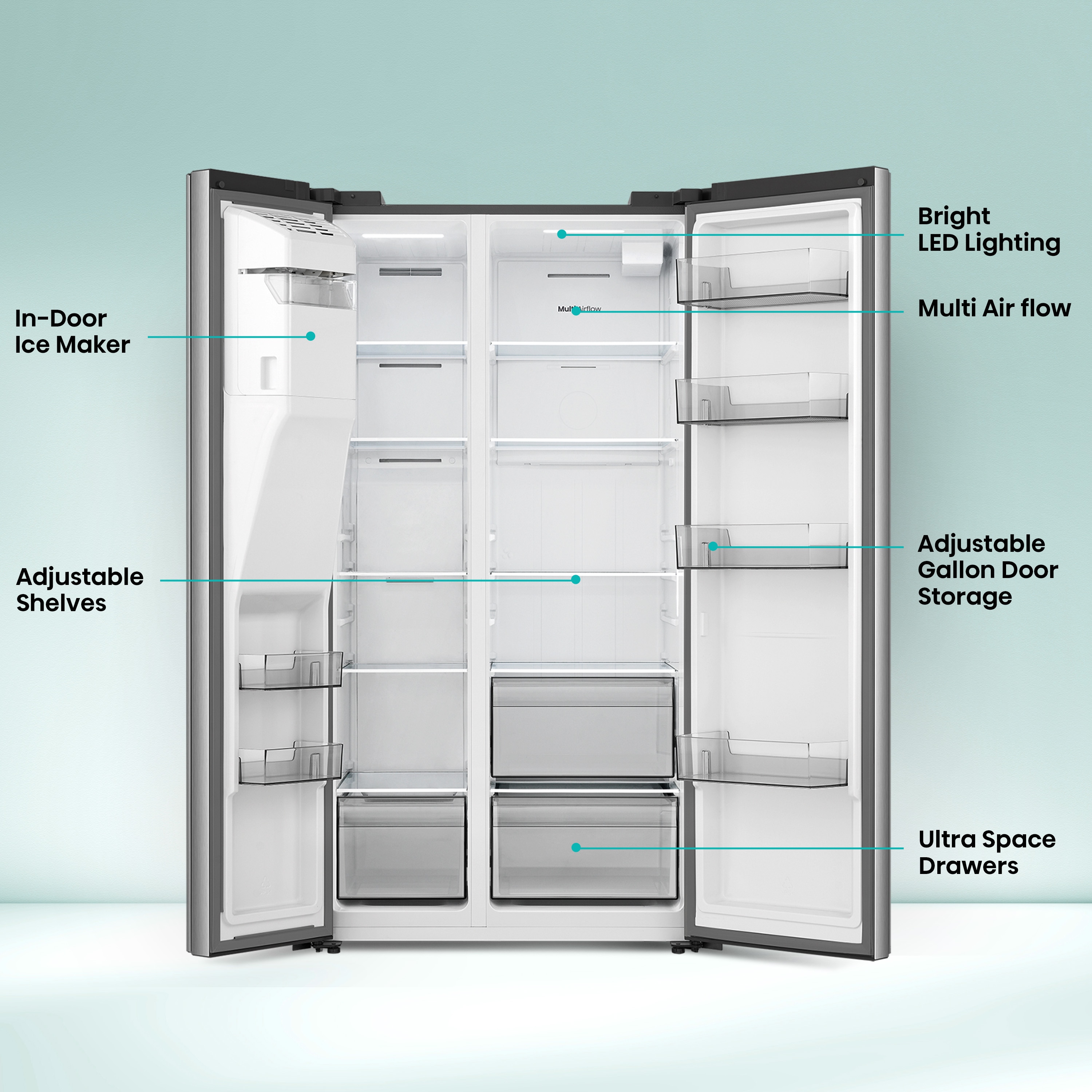 Big Fridge for a Big Family – Meet the Hisense UltraCapacity Side by Side refrigerator—the ultimate storage powerhouse. With the No. 1 capacity in the US and UltraSpace drawers Maximizing storage for produce and frozen items with extra-deep, ultra-spacious compartments. You’ll never run out of room (Yes, even those impulse Costco hauls). The In-Door Ice Maker frees up freezer space, while the UltraTall ice and water dispenser easily fits up to 10″ tumblers. Adjustable shelves and a gallon door bins maximize flexibility for all your storage needs. Bigger really is better.