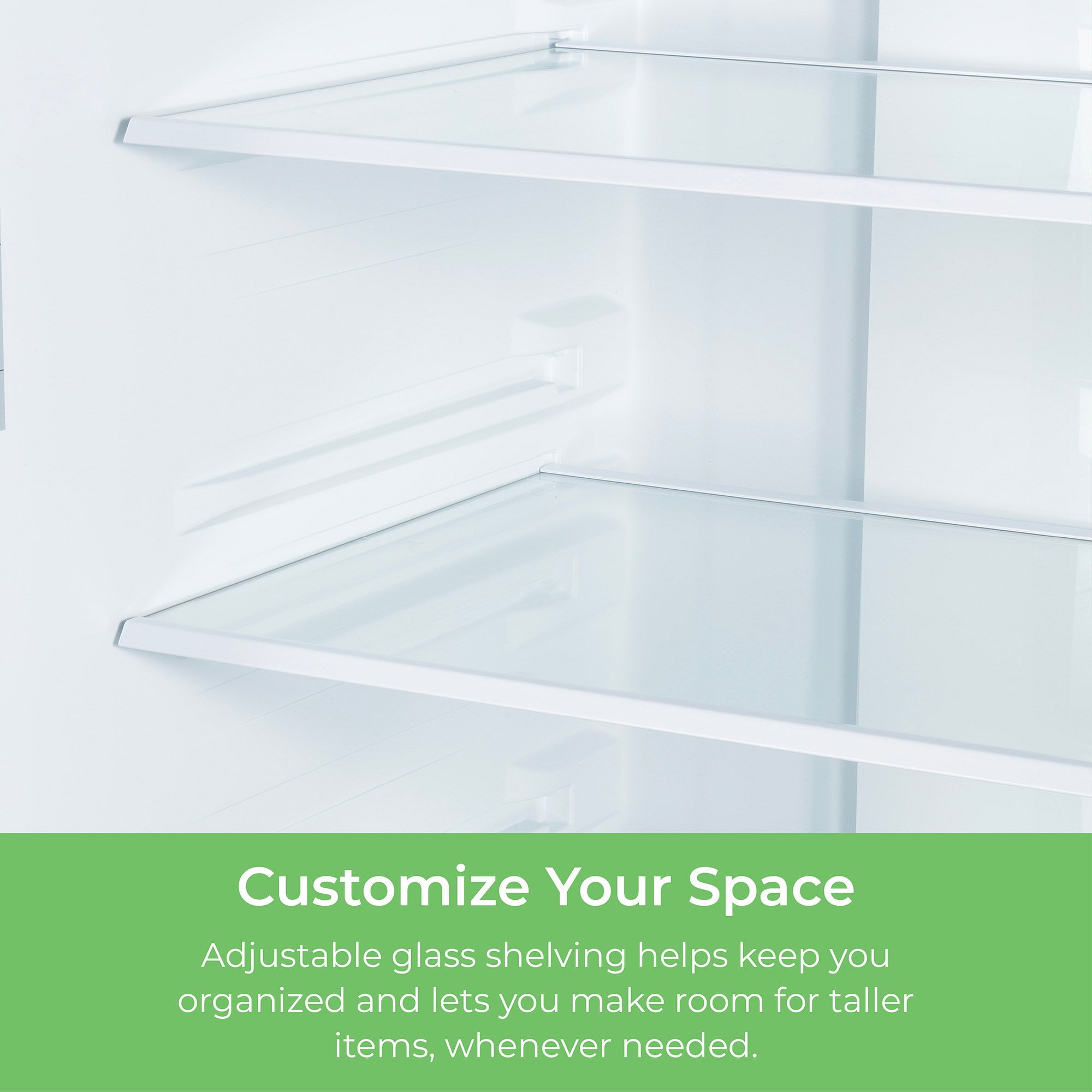 Adjustable full-width glass shelves