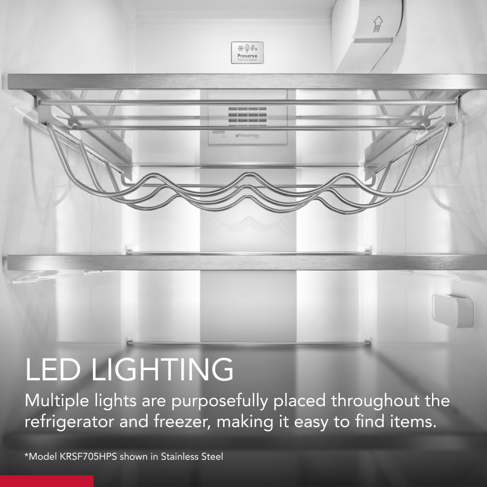 LED Lighting in the refrigerator and freezer makes it easy to find items at a glance