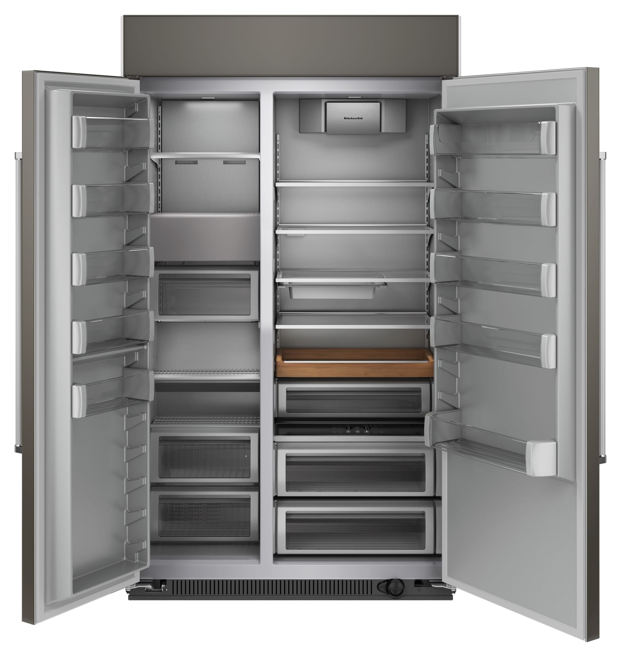 This premium 48” built-in refrigerator features PrintShield™ Finish to resist fingerprints outside, and innovative storage features inside. Like the Under-Shelf Prep Zone with included bakeware – ideal for storing food prep, chilling desserts and more. The Wood-Look Pull Out Tray keeps ingredients beautifully organized and is moisture- and stain-resistant. Plus, maintain optimal temperatures of your ingredients with the ExtendFresh™ Plus Temperature Management System.