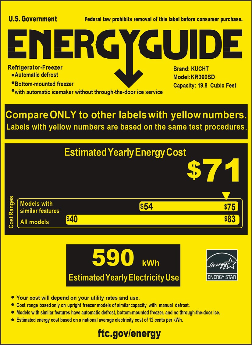 The Kucht KR360SD Refrigerator has a modern and sophisticated aesthetic with a new design of more robust doors. Inside, it is divided with glass shelves to optimize organization and storage. Its total storage capacity is 19.8 cu. ft. The automatic defrost system makes it easy to clean the refrigerator. In addition, it allows a custom panel to be installed on the front face of the appliance that matches the rest of your cabinetry to create a consistent and streamlined look across your whole kitchen.