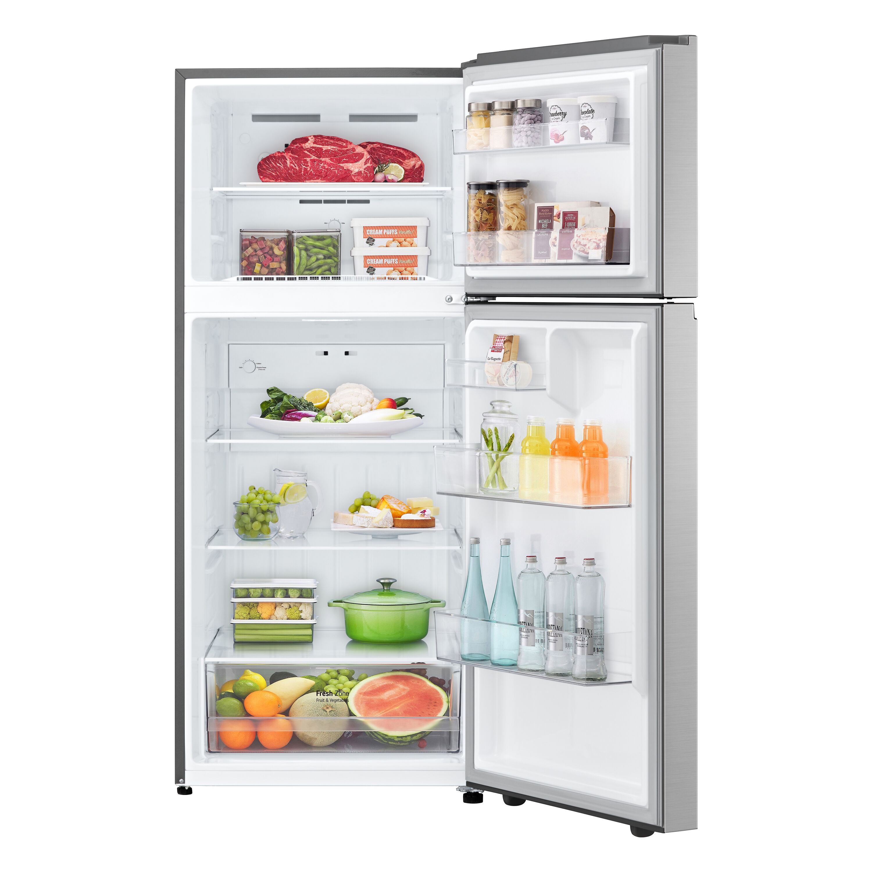 Extra-large produce bin helps keep more vegetables fresher, longer, so you can make fewer trips to the store.