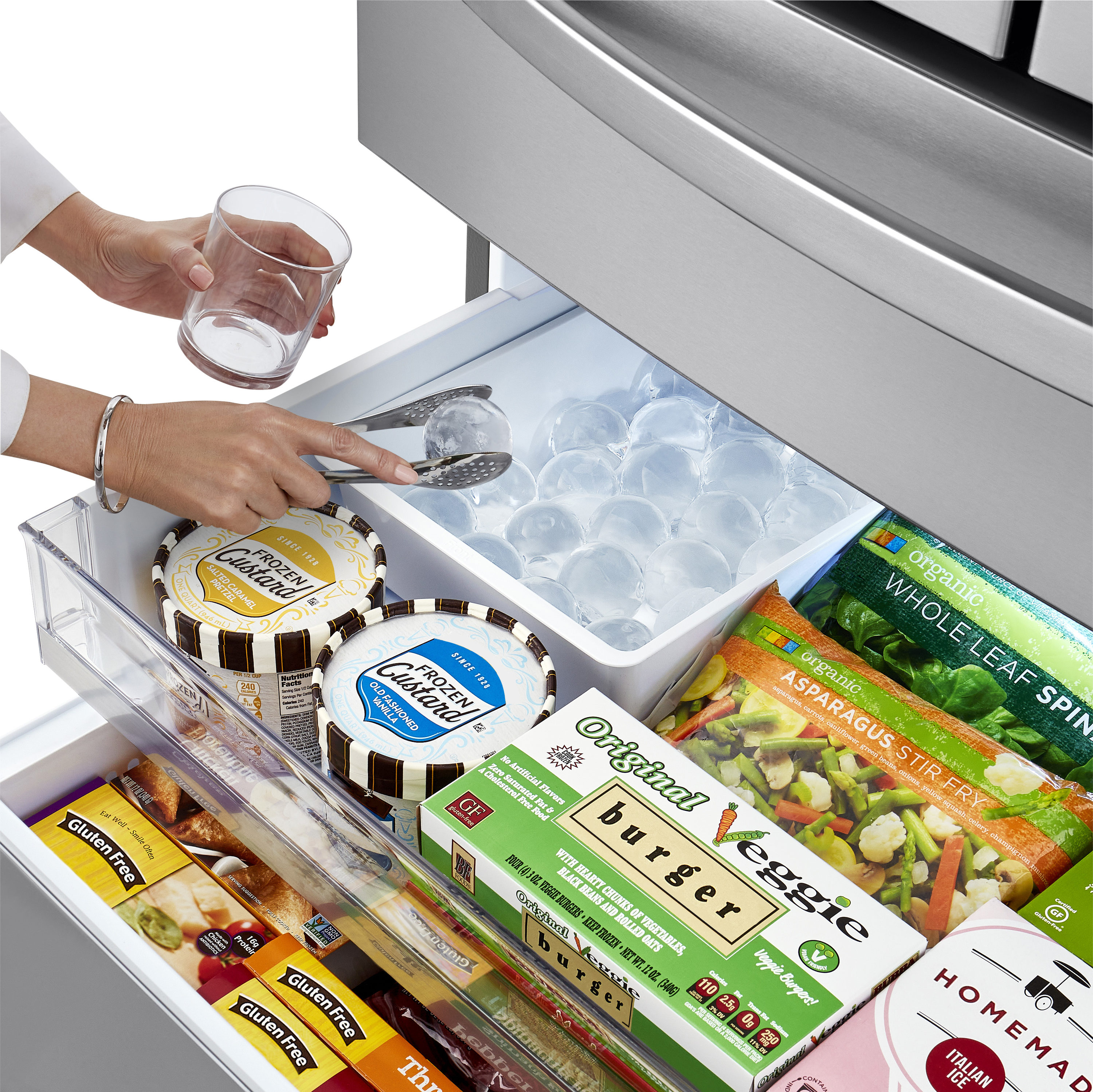 The LG Slim SpacePlus® Ice System provides the most shelf space