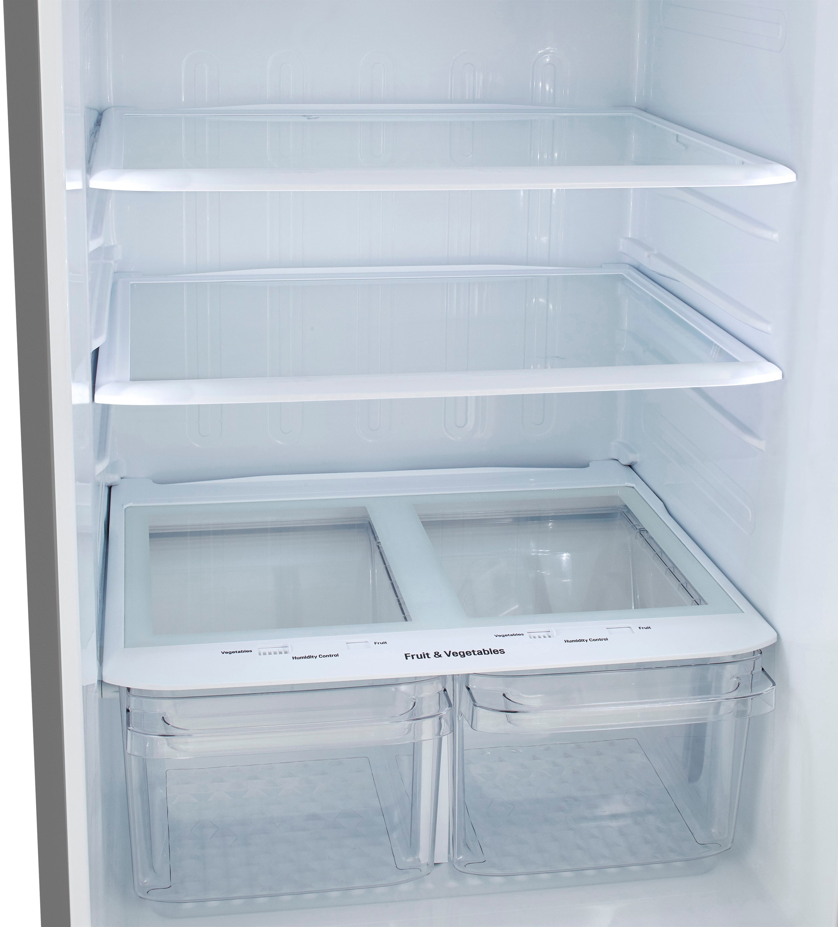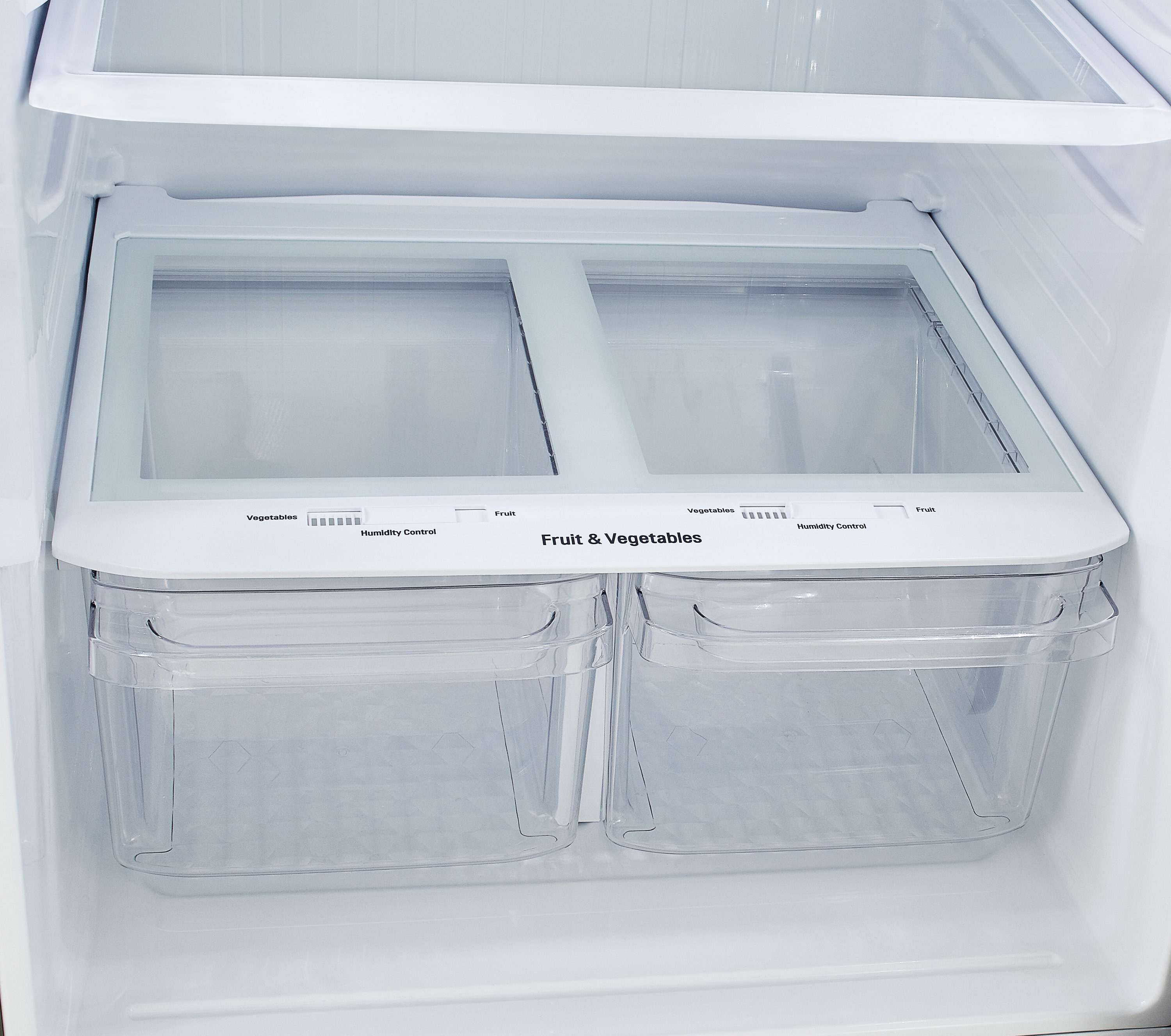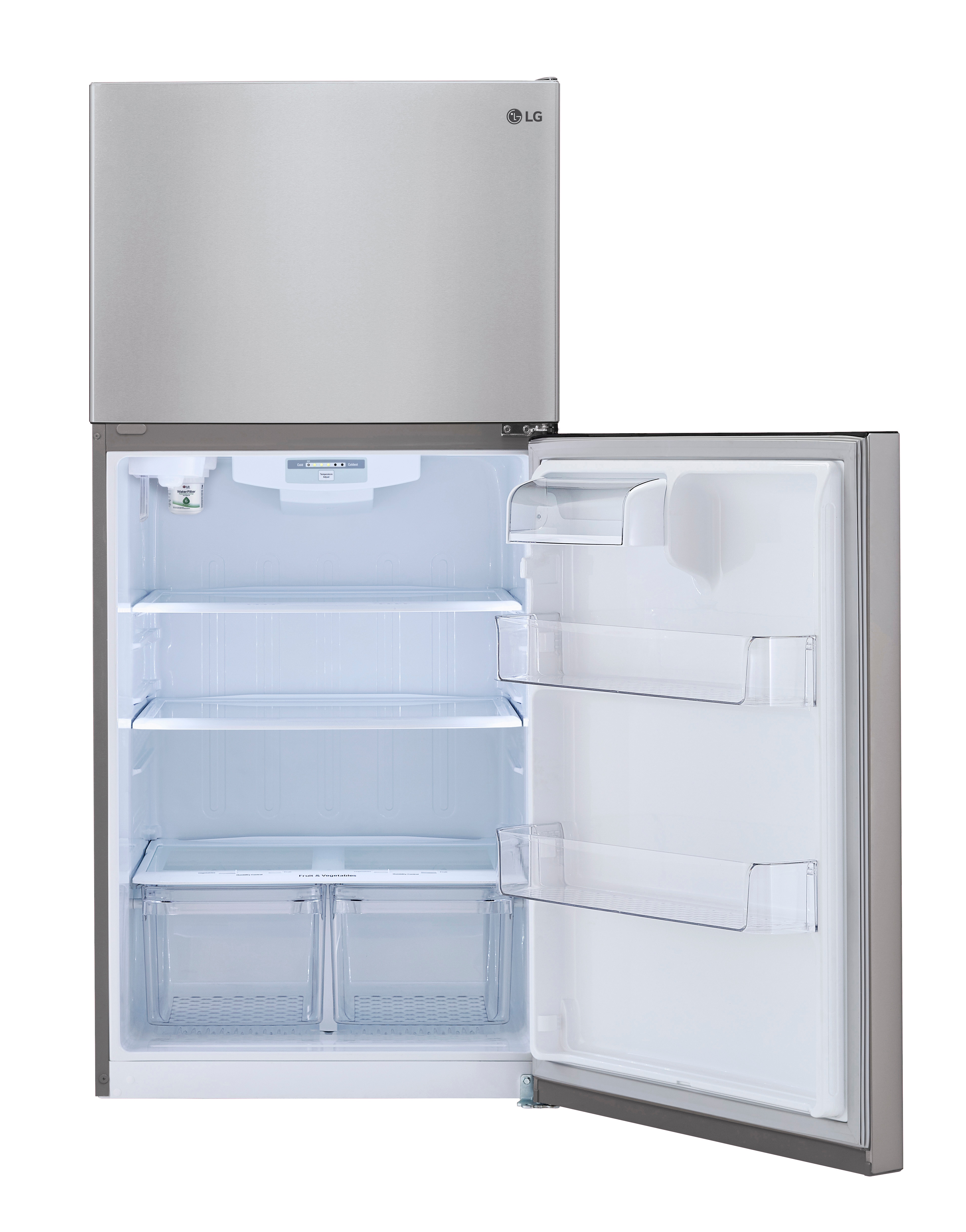 Go big with LG’s top-mount refrigerator featuring a staggering 23.8 cu. ft. of refrigerator and freezer storage space. In addition to surprising capacity, you’re also have freshness with LG’s humidity-controlled crispers. Help extend the life of your fruits and vegetables … and see it more clearly with LG’s advanced LED interior lighting. This elevated design is also on the outside – PrintProof stainless steel finish keeps smudges away with the wipe of a cloth, along with a sleek pocket handle.
