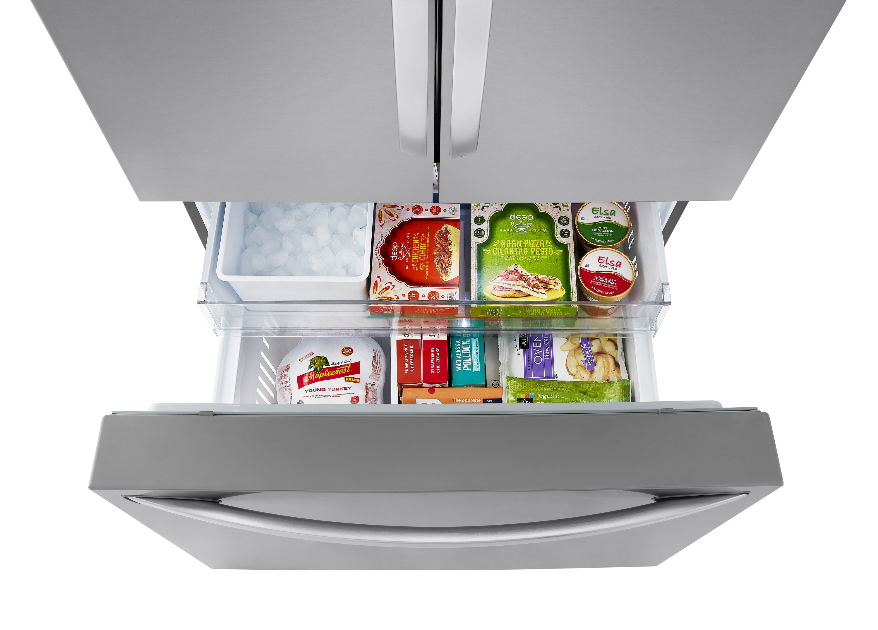 With some of the largest capacity in its class, at 32 cu. ft., this LG three-door Standard-Depth MAX refrigerator has a sleek look and offers enough room to store all your family’s favorite foods. LG offers the capacity you typically get in a standard-depth refrigerator packaged in a sleek design so you don’t need to compromise your style. The convenient internal dispenser offers easy access to filtered water while providing sleek, minimalist doors with no visible dispenser.