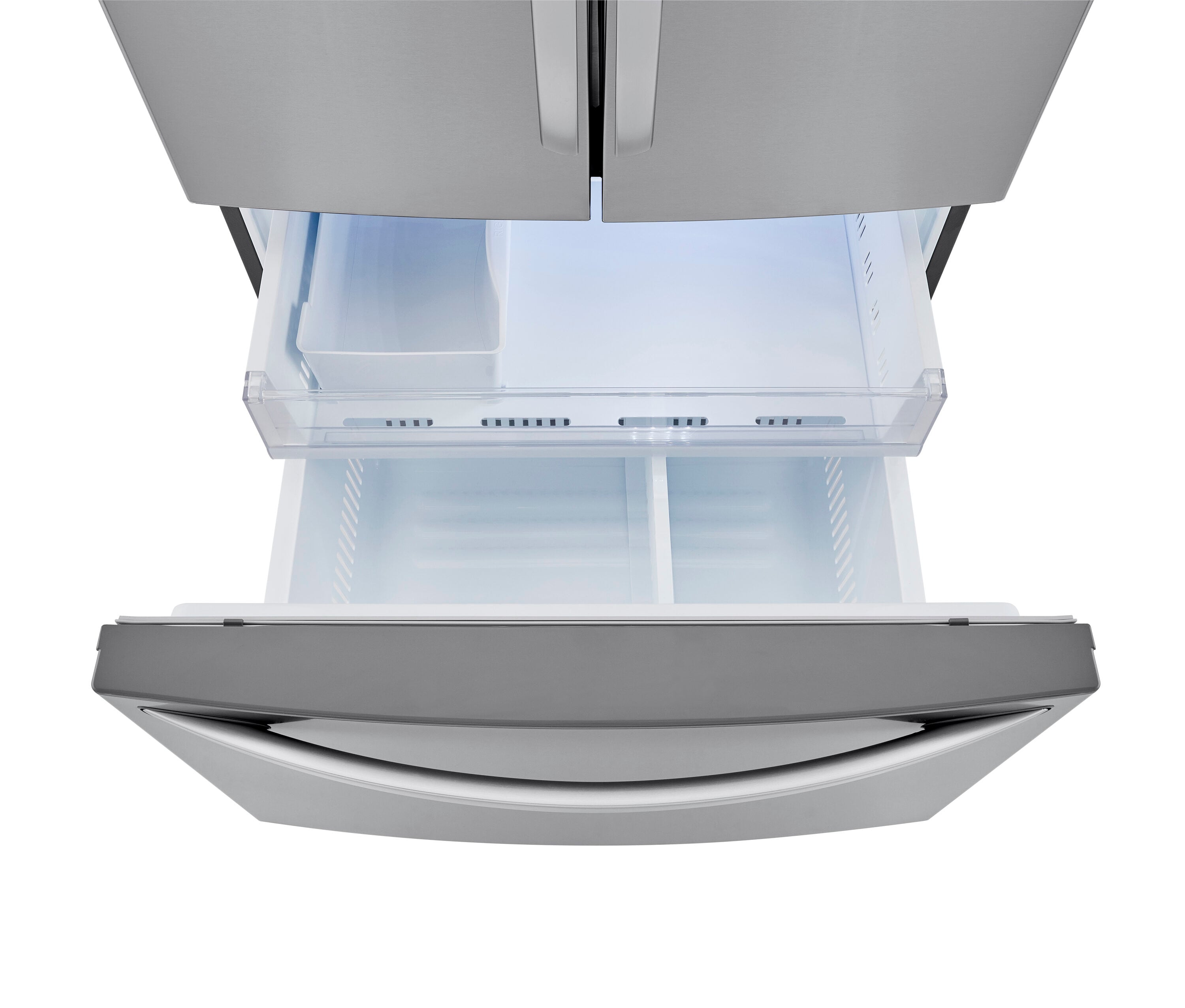 More space. Less fuss. This is the refrigerator you dreamed of with the feature set that matters. Open the wide French Doors to reveal a spacious 28.7 cu. ft. of storage – now more useful space than ever. Without a bulky ice maker looming on the top shelf, you can truly store more. But there’s more to love, you also get LG’s lifestyle innovations like the PrintProof® easy-care finish and Door Cooling+ technology, which provides blasts of cool air to the refrigerator.