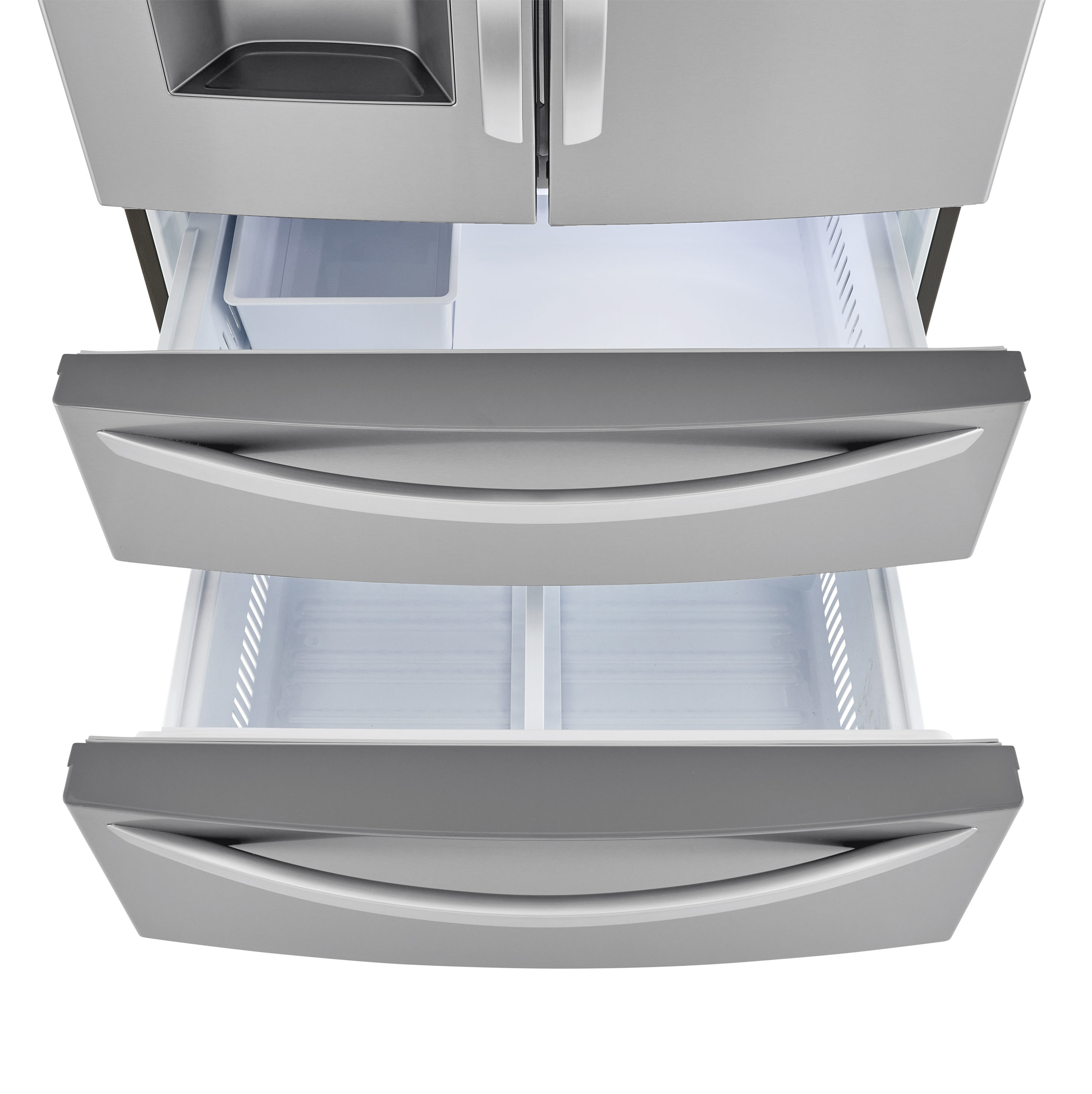 Discover the sophistication of simplicity with a spacious fridge interior and double freezer drawers to keep frozen essentials at your fingertips. With separate upper and lower drawers, you can keep frequently used items up top where they’re easy to access right beside LG’s exclusive slow-melting craft ice use the generous lower drawer to store bulky items like your holiday turkey or extra pizzas for when the gang comes over.