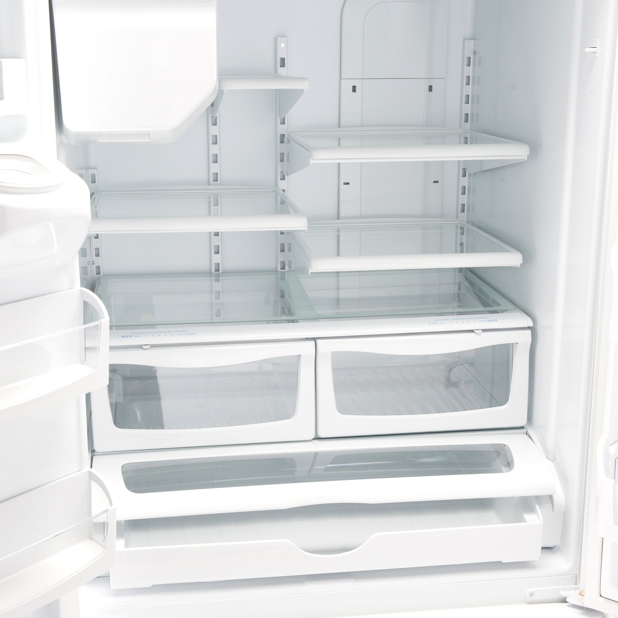 This Maytag® french door refrigerator is made with heavy-duty components and features that deliver the right kind of cold exactly where it’s needed. It’s available in Fingerprint Resistant Stainless Steel to keep this fridge looking as good on the outside as it works on the inside. With the touch of a button, the PowerCold® feature quickly chills down the refrigerator. The temperature-controlled Wide-N-Fresh™ deli drawer provides the perfect place to keep deli items so they stay fresh longer. And when it comes to durability, this french door refrigerator has stainless steel handles to give you something hardy to grab on to, while the 10-year limited parts warranty on the compressor means you can count on it hold the cold for years.