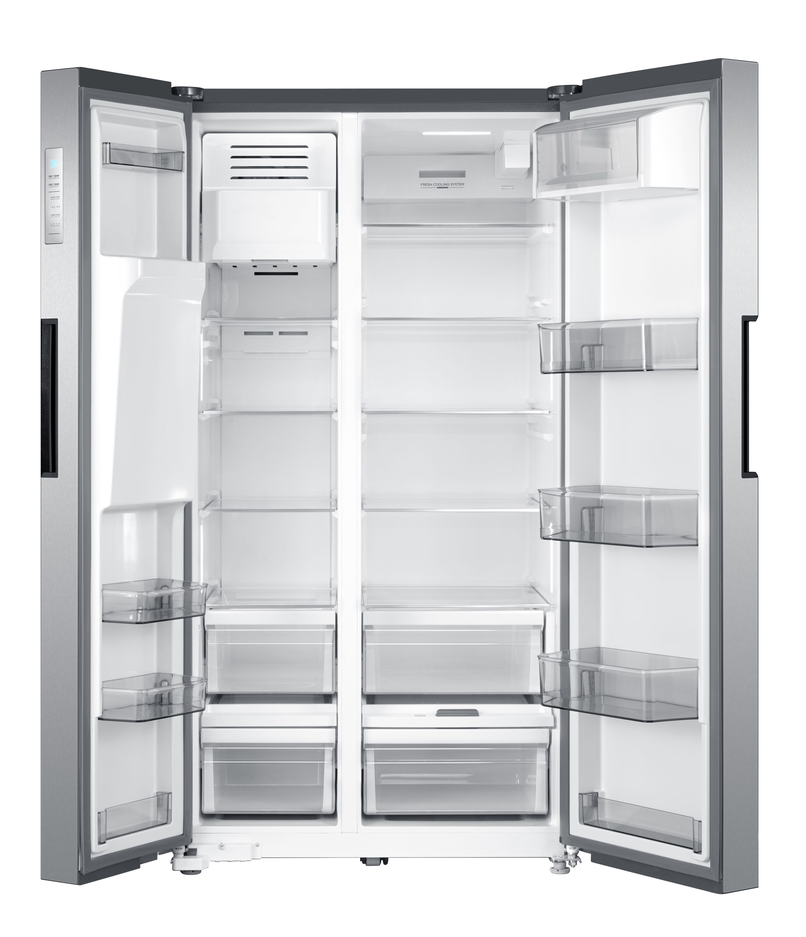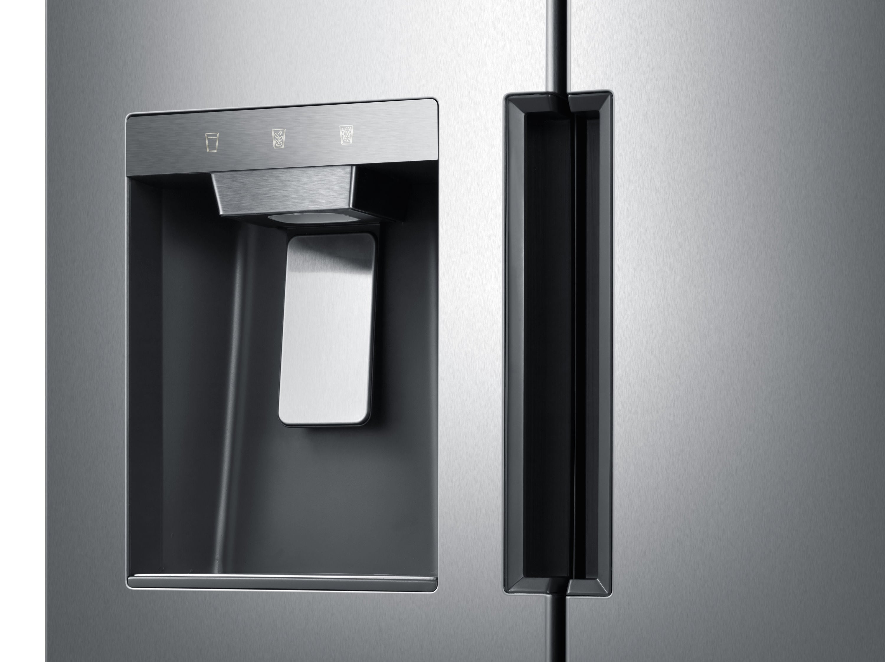 Elegant dispenser design – on-door cubed/crushed ice and water access with backlit selector keys that remain hidden until activated Gallon plus door bins – give you room for larger items like milk and juice bottles