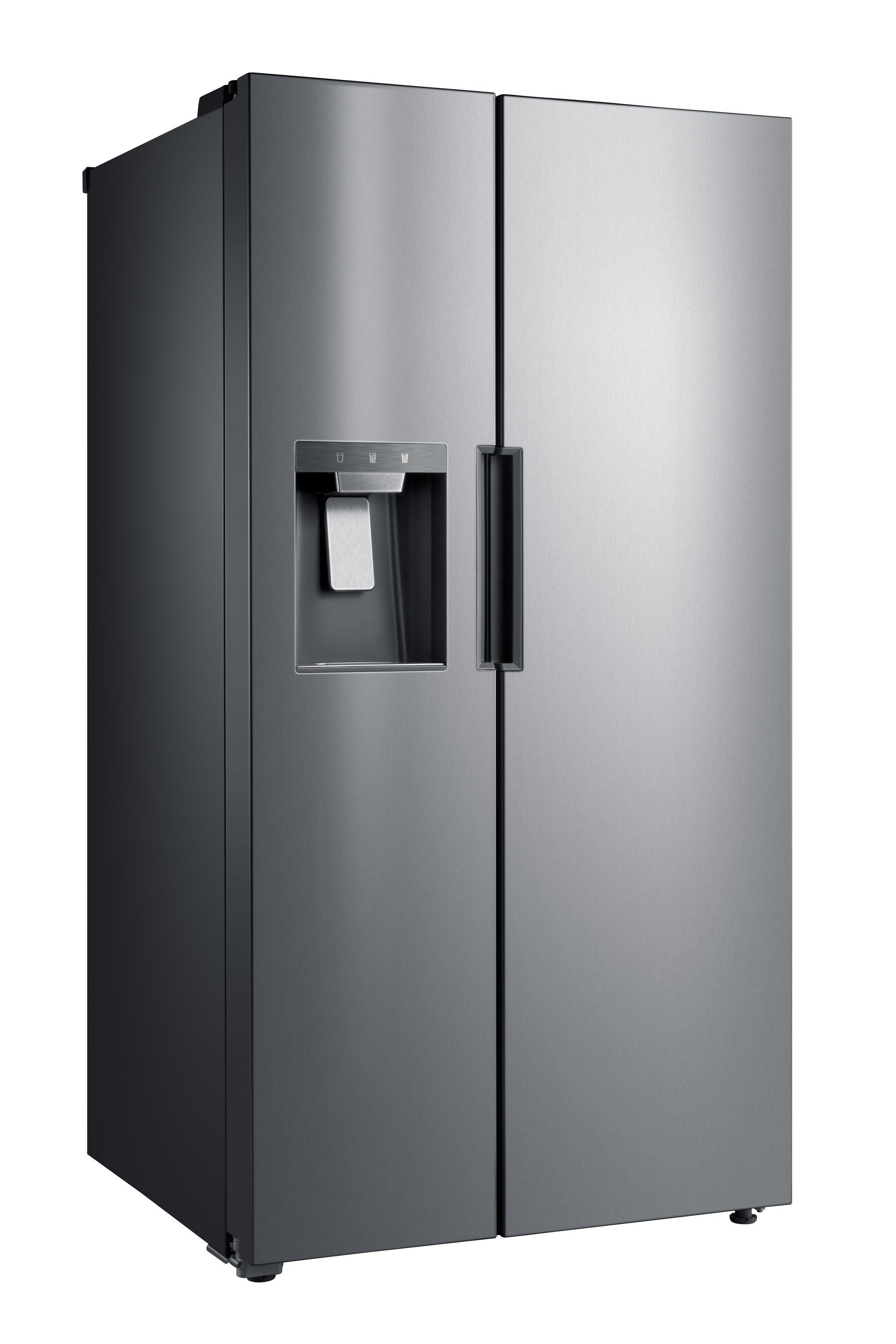 The Midea 26.3-cu ft side-by-side refrigerator with ice maker (stainless steel) has a large but organized capacity to keep your favorite refrigerated and frozen foods fresh. This side-by-side refrigerator features an easily accessible door dispenser that delivers fresh filtered water and cubed or crushed ice. This refrigerator also has premium glass shelves to help you easily find everything and easily clean the shelves. The elegant LED lighting provides maximum visibility while consuming less energy. The stainless steel finish with the pocket handle and hidden hinges gives this refrigerator a sleek modern look that would add the perfect touch to your kitchen decor!