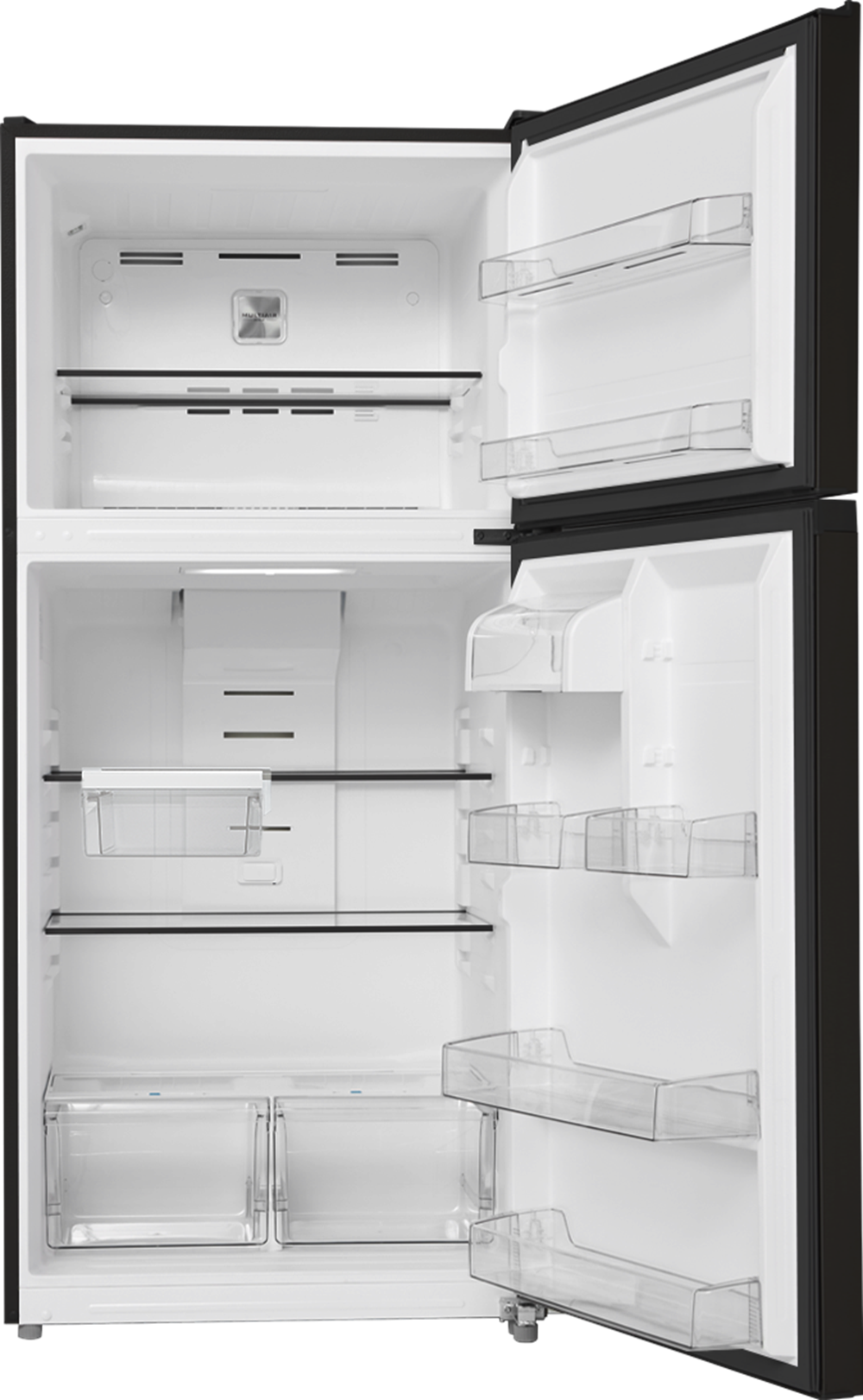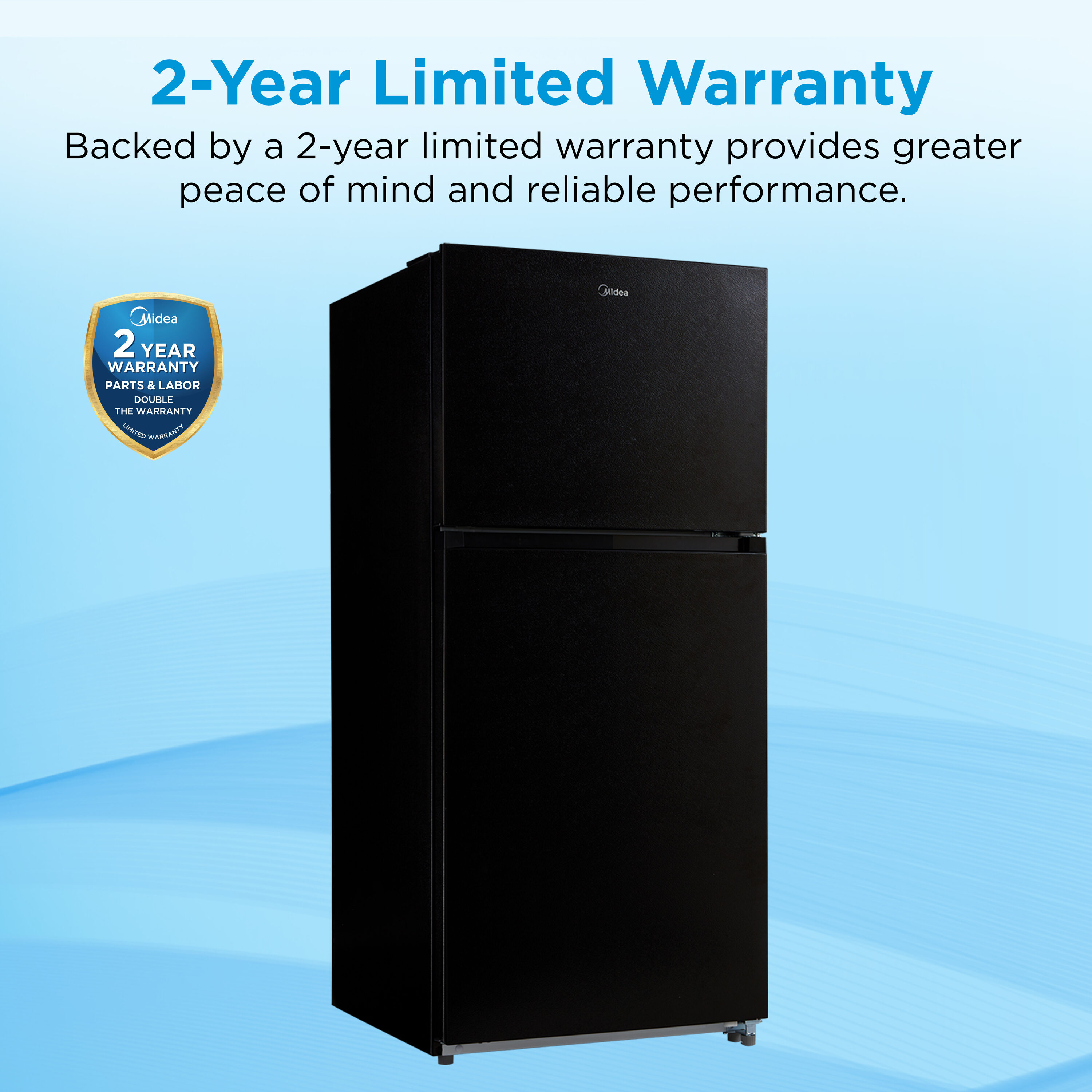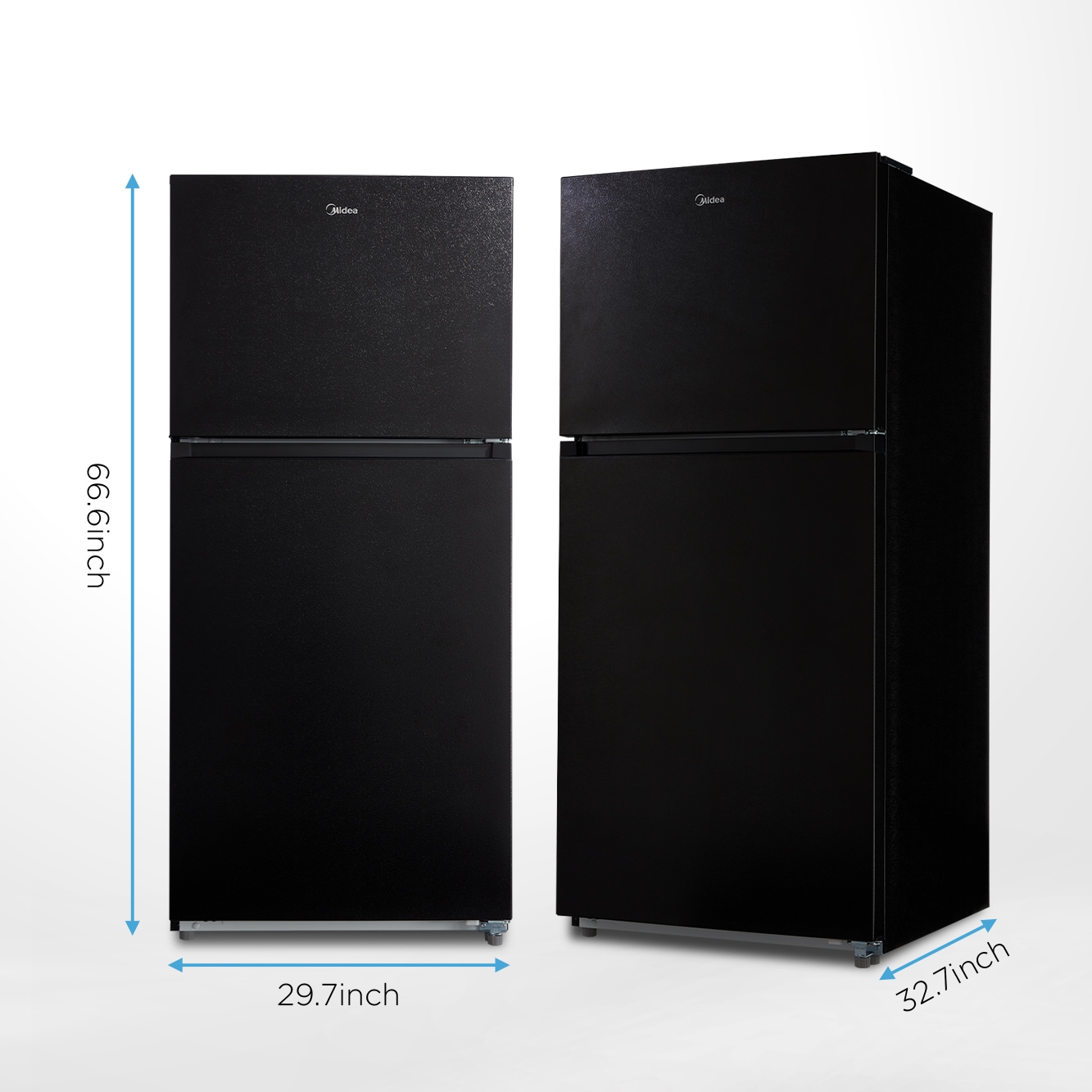 Upgrade your kitchen with the Midea 20.5-cu ft Top-Freezer Refrigerator (Black), which offers both a wide range of convenient features and energy-efficient performance. The internal LED lighting ensures that you can always find what you’re looking for, while the electronic control panel makes temperature adjustments a breeze. Humidity-controlled crisper drawers keep your produce fresh, and the reversible door allows for flexible installation. The top-freezer design puts frozen foods at eye level for easy access. Bring home this refrigerator today to optimize your food storage capabilities and keep your kitchen running smoothly.