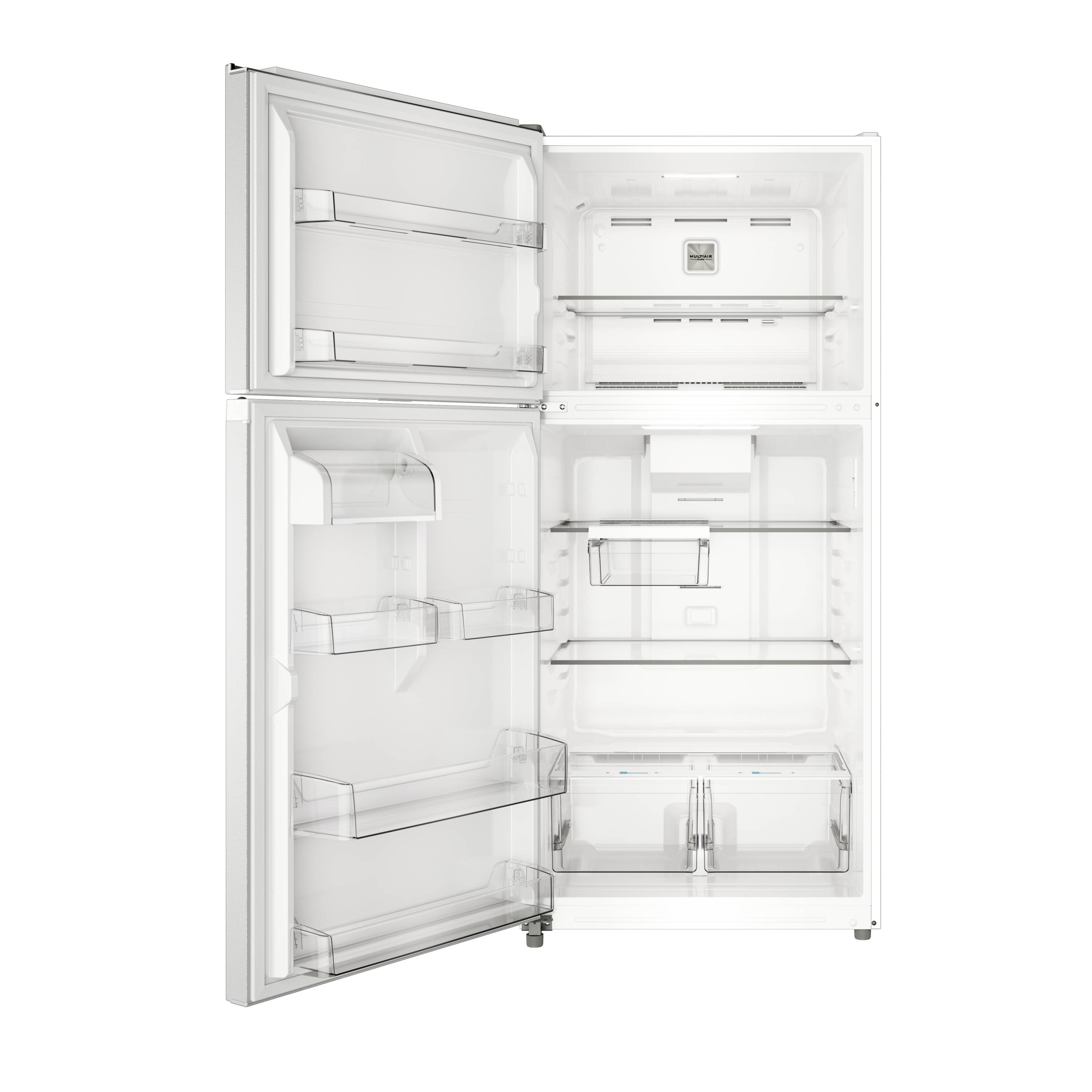 Upgrade your kitchen with the Midea 20.5-cu ft Top-Freezer Refrigerator (White), which offers both a wide range of convenient features and energy-efficient performance. The internal LED lighting ensures that you can always find what you’re looking for, while the electronic control panel makes temperature adjustments a breeze. Humidity-controlled crisper drawers keep your produce fresh, and the reversible door allows for flexible installation. The top-freezer design puts frozen foods at eye level for easy access. Bring home this refrigerator today to optimize your food storage capabilities and keep your kitchen running smoothly.