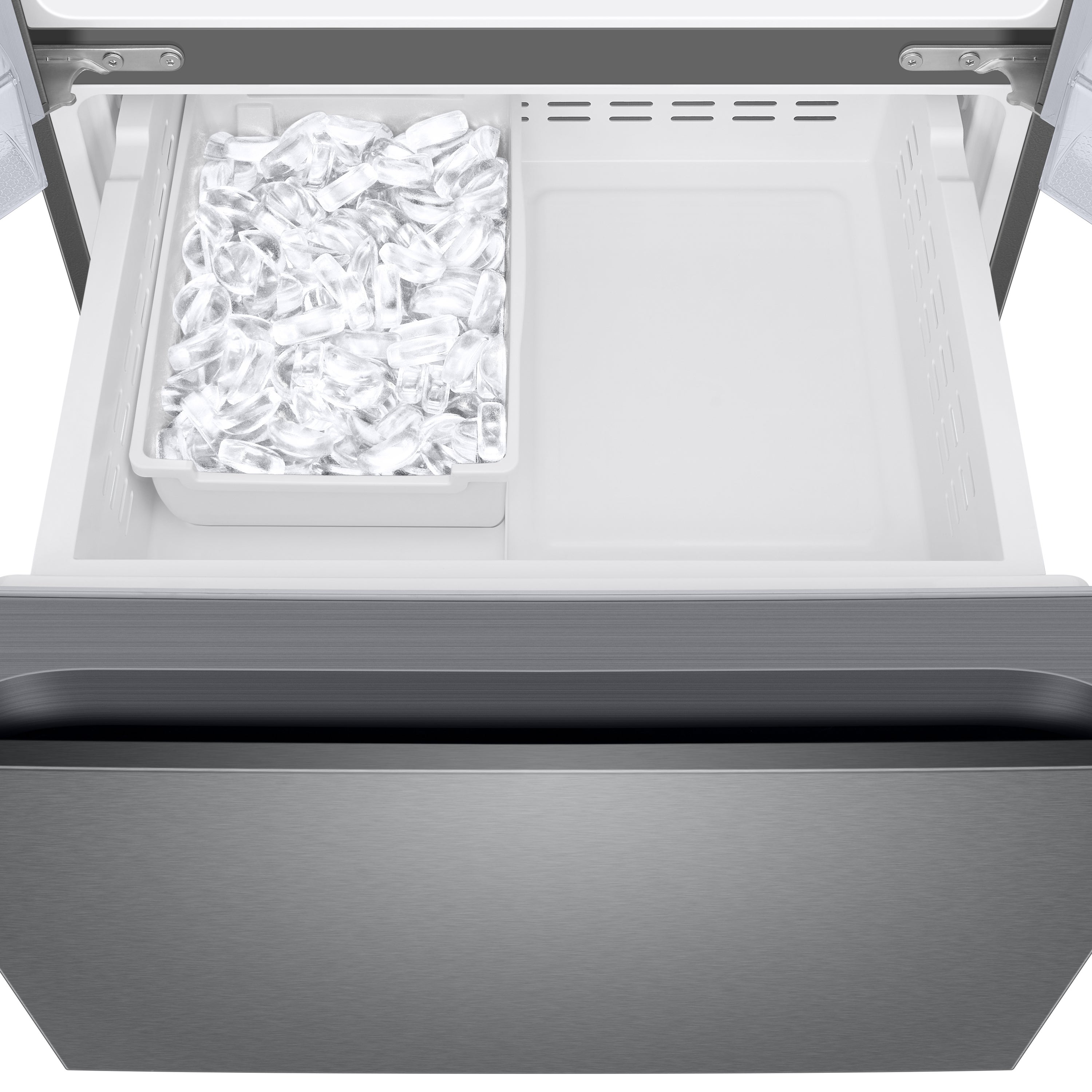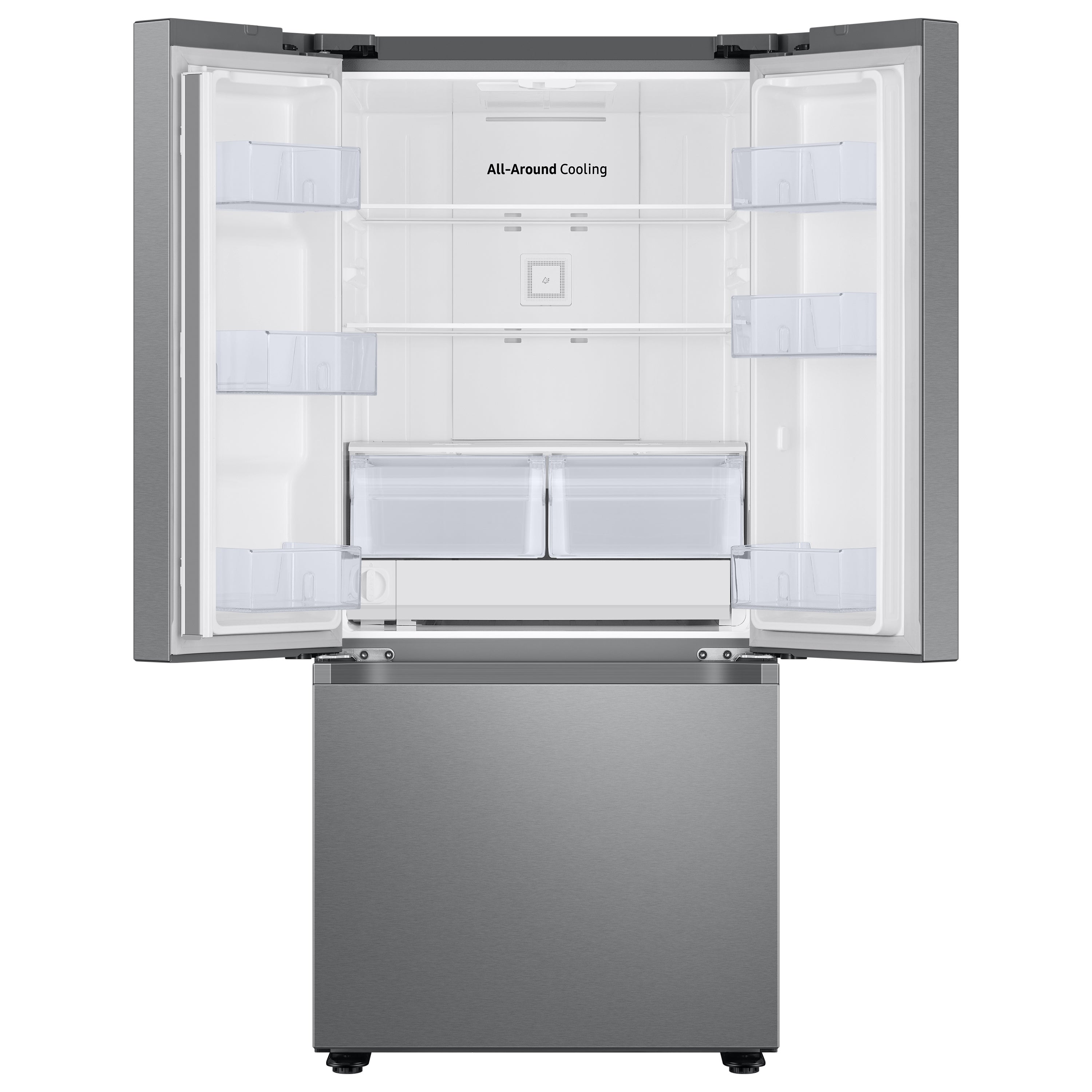 Samsung’s 22 cu. ft. Smart 3-Door French Door refrigerator is beautifully designed with an external water dispenser and a modern look that blends seamlessly into your kitchen