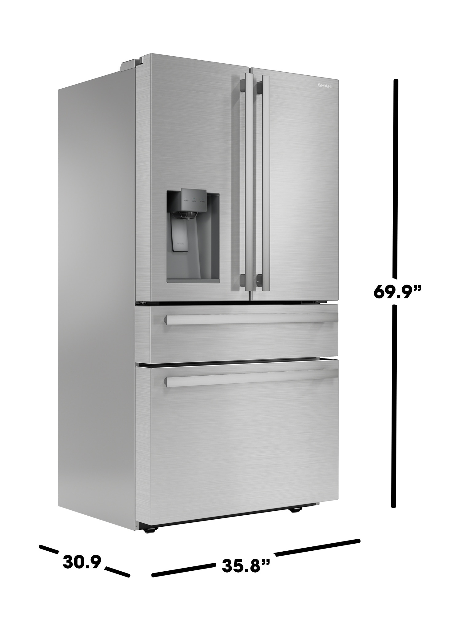 The SJG2254FS 21.6 cu. ft. capacity, French Four-Door, Counter-Depth, Refrigerator pairs beautifully with other stainless steel appliances, and is a contemporary, and stylish addition to your dream kitchen. This counter-depth refrigerator incorporates a unique Triple-Cooling System that allows you to independently control your refrigerator, drawers, and ice maker for greater flexibility and better efficiency. Inside the refrigerator, the four bright white LED lights give you a clear view throughout the refrigerator, plus there are additional LED lights in the Flex Drawer and Freezer Drawer. The control panel for the refrigerator is conveniently located on the Flex Drawer, where it is easy-to-reach and easy-to-use. The SJG2254FS features a water and ice dispenser on the door. A Slide-In shelf gives you more ways to organize your refrigerator and create more space for larger items like pitchers and bottles. Some practical features, including Chill-Boost and Freeze-Boost, help to quickly adjust the refrigerator and drawers’ internal temperatures as needed. The six, spacious, Gallon Door Bins give you the room you need to store your most reached-for items. The multipurpose Flex Drawer with independent temperature control adapts to your lifestyle. Optimize your storage of meats (30F), or deli items (37F). The stainless steel cooling plate helps achieve rapid and even refrigeration. Set your Flex Drawer to the ideal temperature for beverages (34F). You can even convert it to a wine chiller (41F). Gliding smoothly, and extending fully, you always have easy access to what’s inside. The spacious Freezer Drawer includes an upper pullout-drawer for quick access to grab-and-go items and an extra ice storage bin. With customizable storage and thoughtful engineering, the elegant stainless steel SJG2254FS refrigerator really is Simply Better Living.