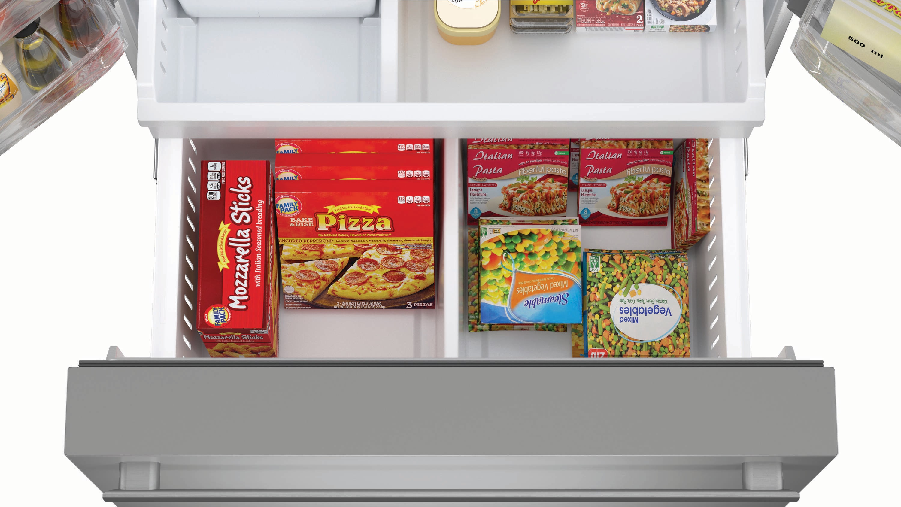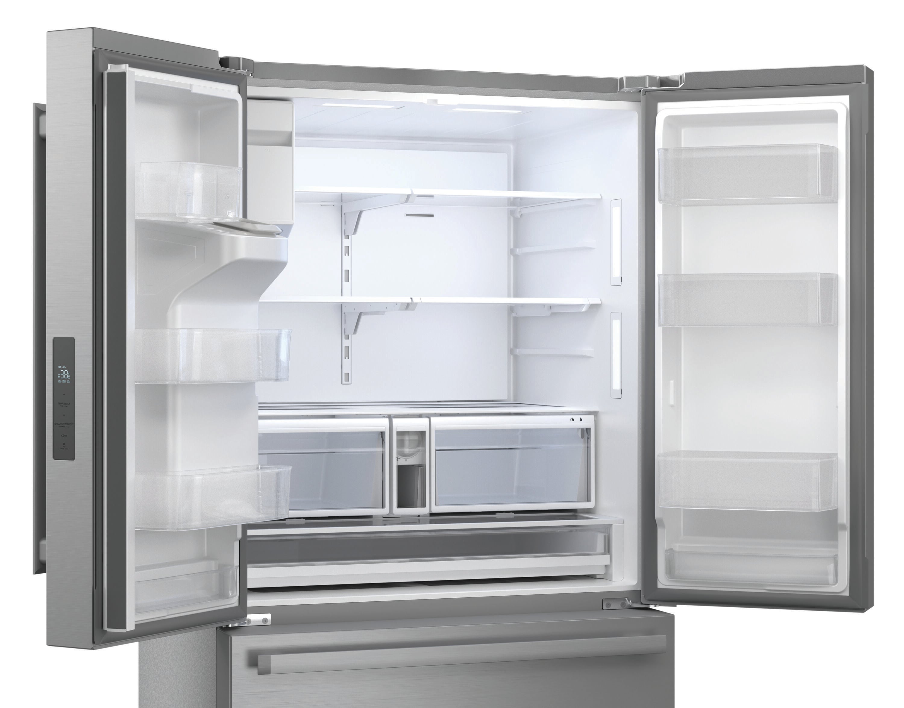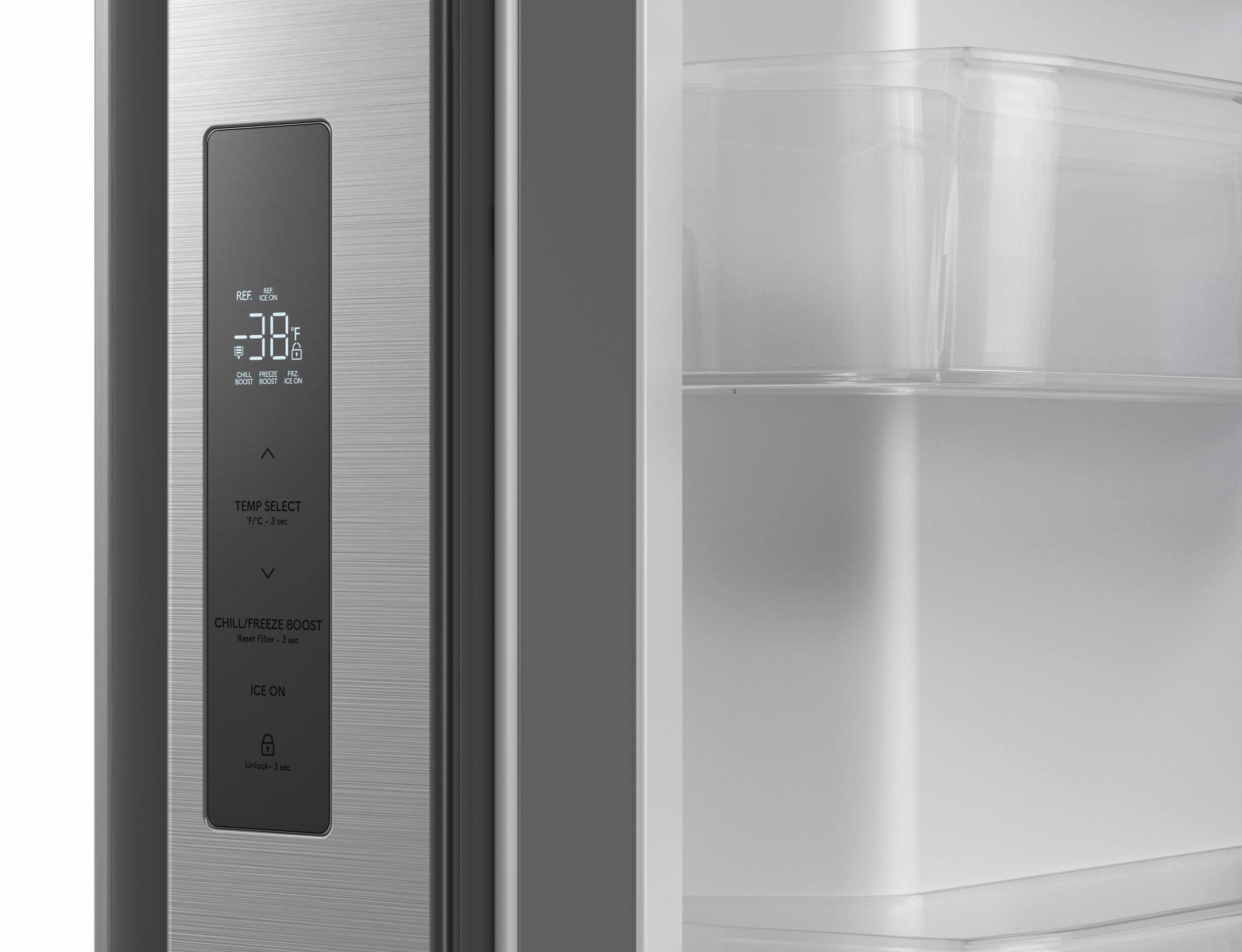 This refrigerator incorporates an Advanced Cooling Plus System, which helps maintain optimal freshness for your groceries. An ice and water dispenser on the door provides cubed ice, crushed ice, and water without opening the door. Dual ice makers provide up to 6.9 lbs. of ice per day for even your largest gatherings. For accelerated cooling, Chill-Boost and Freeze-Boost options are available to quickly adjust the refrigerator and freezer internal temperatures as needed. This ADA compliant refrigerator’s touch control panel is conveniently located on the door for easy access. A slide-In shelf and adjustable gallon door bins allow you to organize your refrigerator and create more space for large items like pitchers and bottles. The freezer compartment features an EZ Slide Drawer for easy access to frozen items and automatic defrost for hassle-free maintenance. This refrigerator runs quietly at less than 43 dB and is Energy Star certified for a peaceful environment while conserving energy.