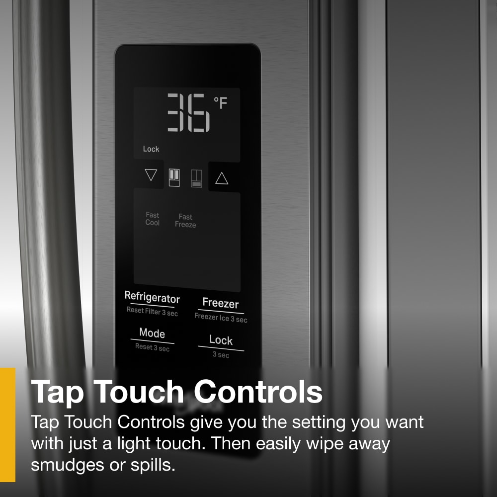 Get family-sized capacity, ice and flexible organization to keep up with whatever the day brings. This Whirlpool® French Door Refrigerator has Large Capacity Ice Production that makes over 3 lbs of ice every day. Pint-Size Storage provides easy access to small items. And half and full Adjustable Glass Shelves deliver flexible storage. ENERGY STAR® certified.