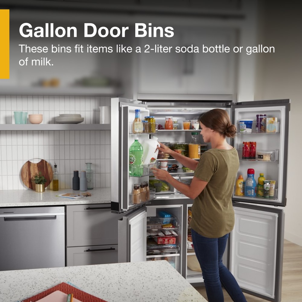 Gallon Size Door Bins fit items like a two-liter soda bottle or gallon of milk
