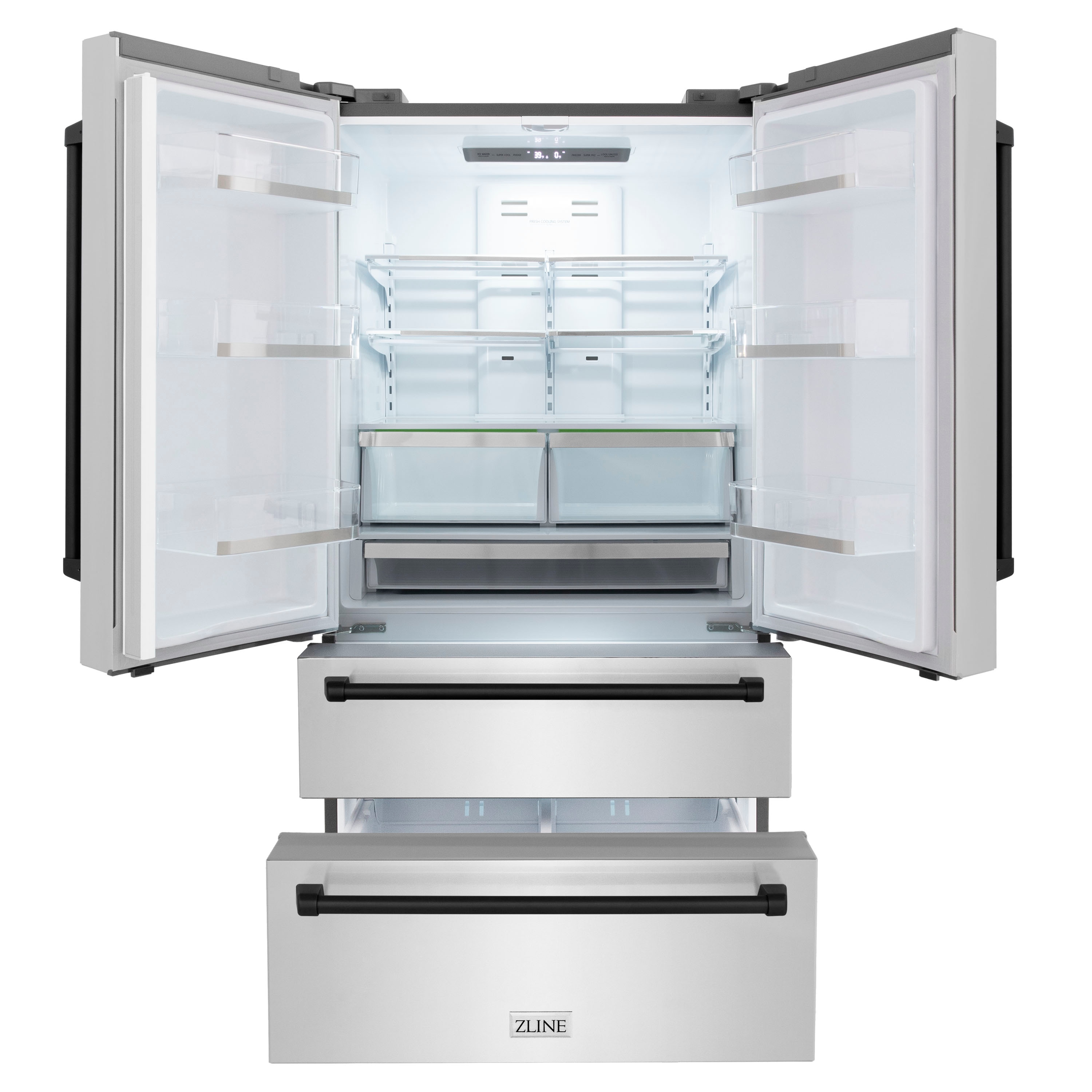 Luxury isn’t meant to be desired – it’s meant to be attainable. The ZLINE Autograph Edition 36 in. 22.5 cu. ft. Counter-Depth French Door Refrigerator with Ice Maker in Fingerprint-Resistant Stainless Steel with Matte Black Traditional Handles (RFMZ-36-MB) delivers an elevated experience by pairing innovative dual cooling technology with a spacious counter-depth design and a high-capacity built-in ice maker. Achieve ZLINE Attainable Luxury® excellence with timeless features designed to enhance your kitchen’s capability.